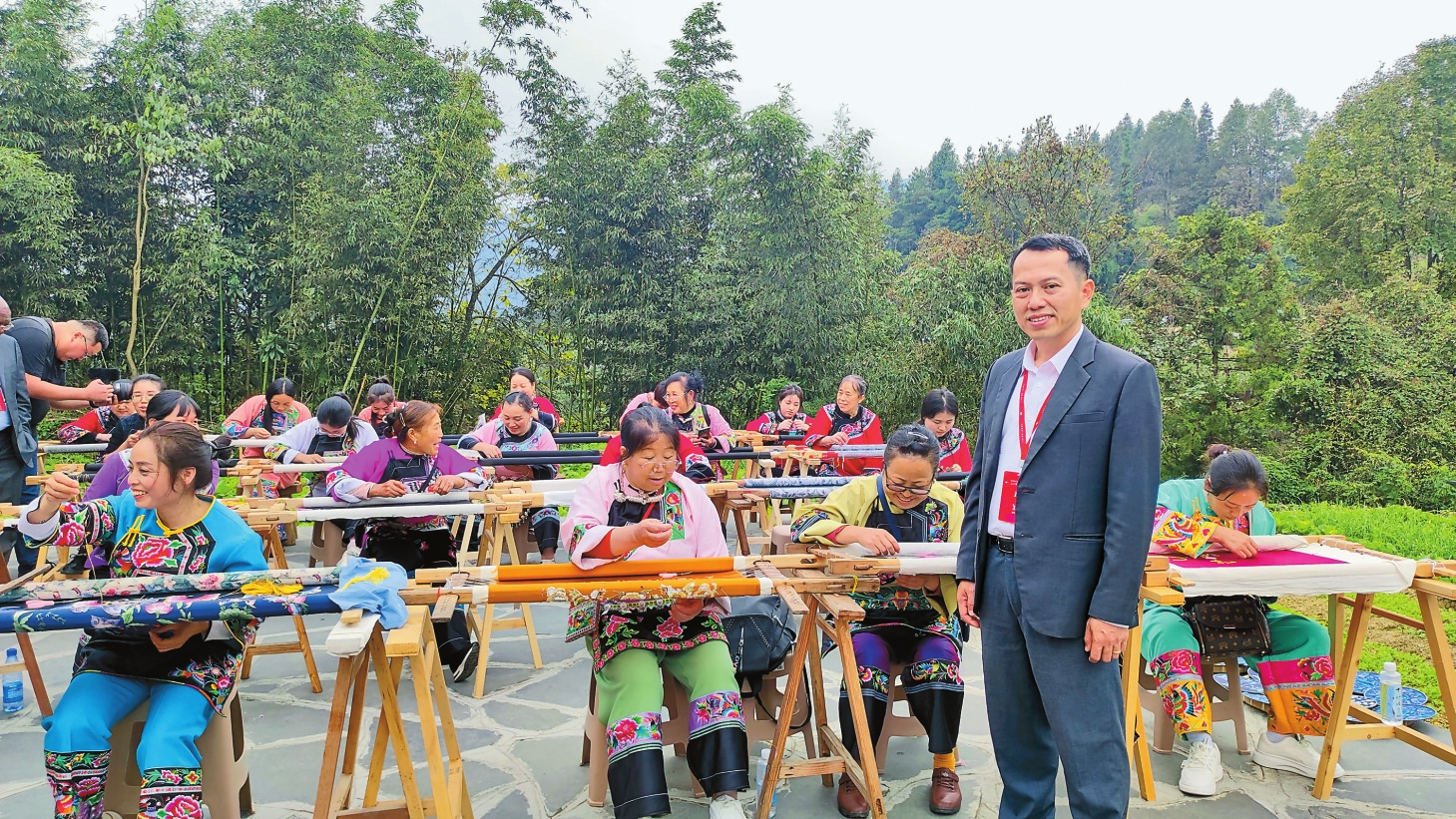 受益于精准扶贫,十八洞村摘掉了贫困村的帽子。昔日的羊肠小道变成了双向通行的大道,猕猴桃、山泉水、乡村旅游等特色产业搞得有声有色。2022年,当地老百姓人均可支配收入从2013年的1668元涨到了23505元。在苗绣合作社,老挝农林部农村发展司副司长阿诺萨·平提马冯与正在做手工刺绣的村民交流,“这些图案是有人给你们提前设计好的吗?”“绣好的作品怎么打开市场销路?”“我们老挝也有这样的刺绣,可以学着你们的思路来运作。”