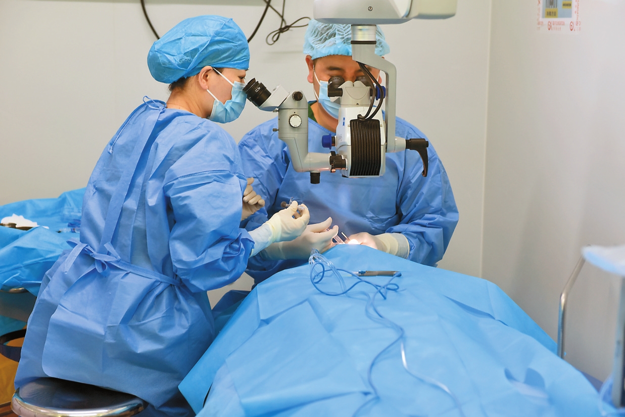 图为11月14日,中国医生在柬埔寨波萝勉省医院为一名患者实施白内障手术。
