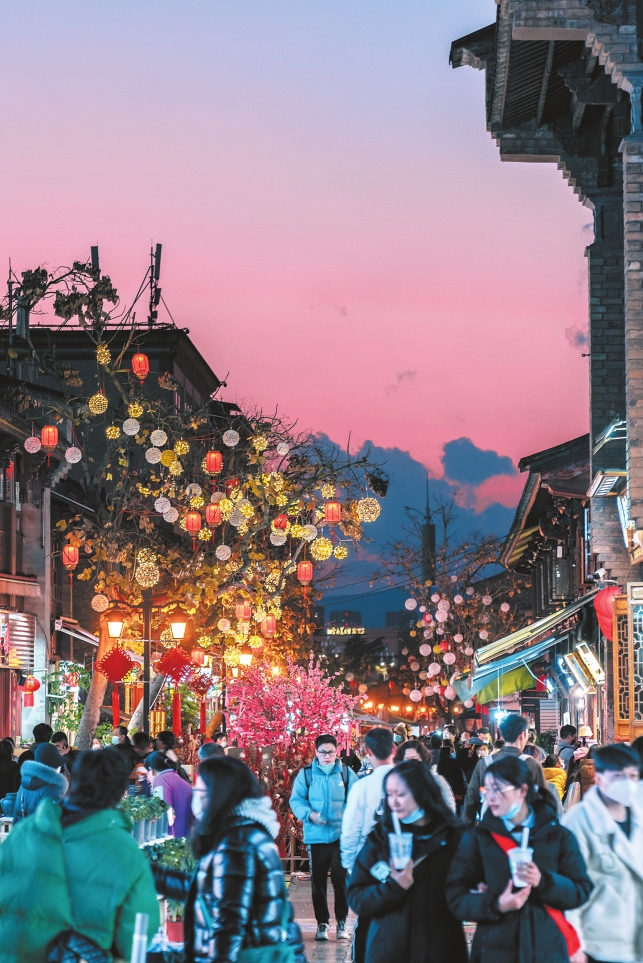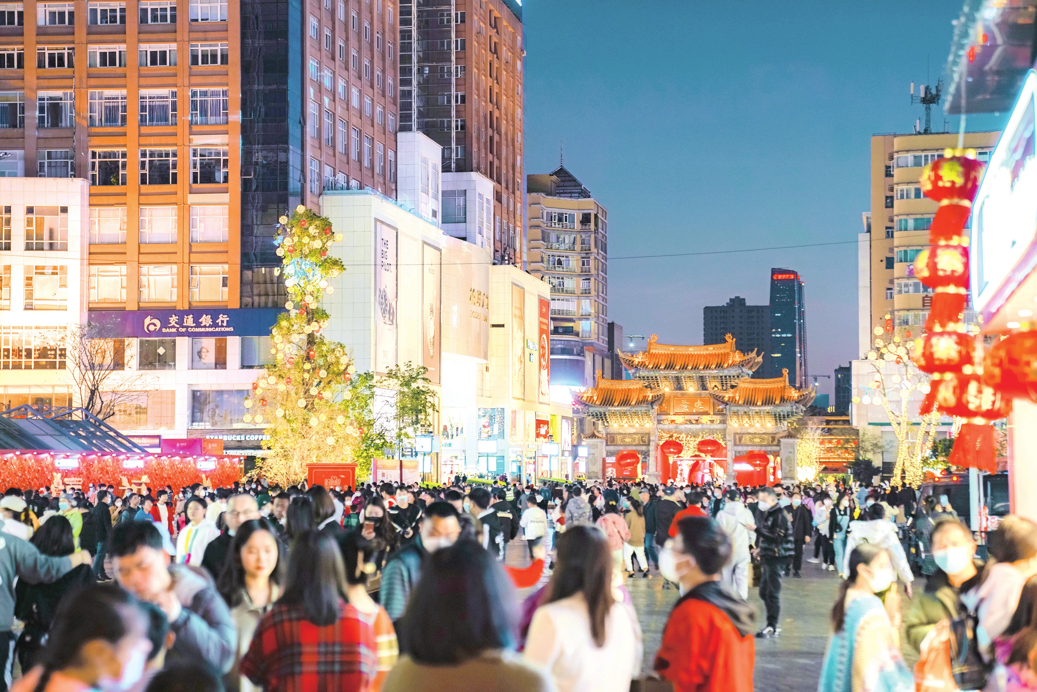 在南强街巷吃滇菜、品普洱茶、喝小粒咖啡,享受舌尖上的南屏;在马家大院看一场对话时空的实景话剧,感受艺术里的南屏;在昆明老街拍一张鲜活的“人生照片”,体验人文里的南屏……近年来,昆明市五华区以传统与现代融合、文化与潮流对话为建设理念,围绕增强规划引领、优化环境设施、提高商业质量、增强文化底蕴、打造智慧街区和规范管理运营等重点,全力把南屏街打造成商业步行街区的云南示范和样板,向国内外消费者展现高品质大型商文旅复合街区,吸引国内外游客来这里品味“有一种叫云南的生活”。