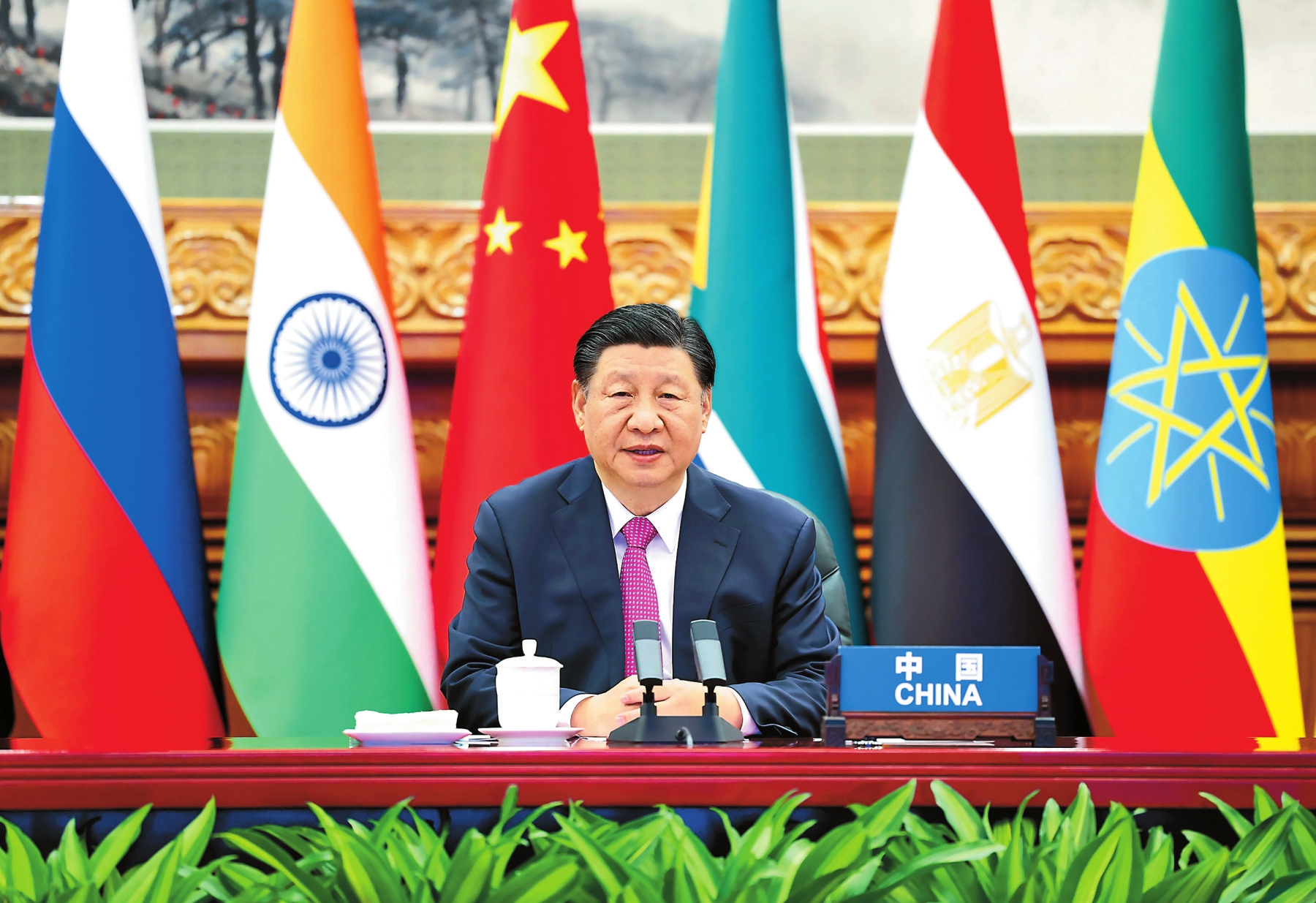 习近平强调,金砖合作机制是新兴市场国家和发展中国家加强团结合作、维护共同利益的重要平台。今天,我们就巴以问题协调立场、采取行动,为扩员后的“大金砖合作”开了个好头。中方愿同其他成员一道,开创金砖合作新时代。