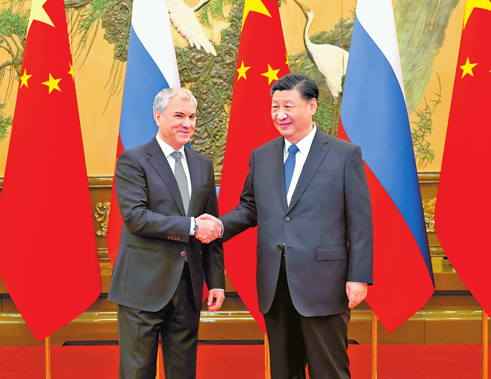 新华社北京11月22日电(记者 杨依军) 11月22日下午,国家主席习近平在人民大会堂会见俄罗斯国家杜马主席沃洛金。