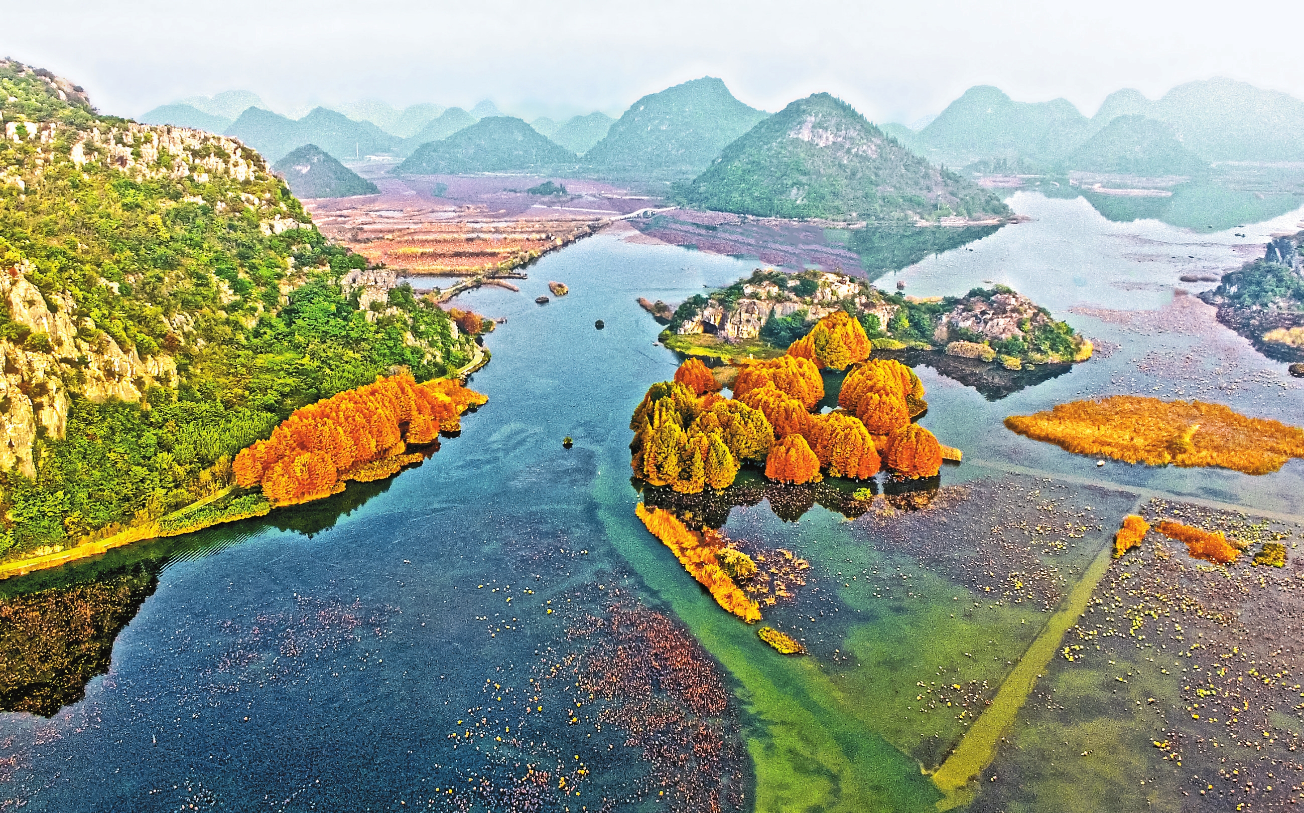 冬日,丘北普者黑风景区美如仙境。置身这座5A级旅游景区内,目之所及,湖泊峰林、层林尽染,水上田园、候鸟翩跹,令人心旷神怡,流连忘返。本报通讯员 马卫忠 摄