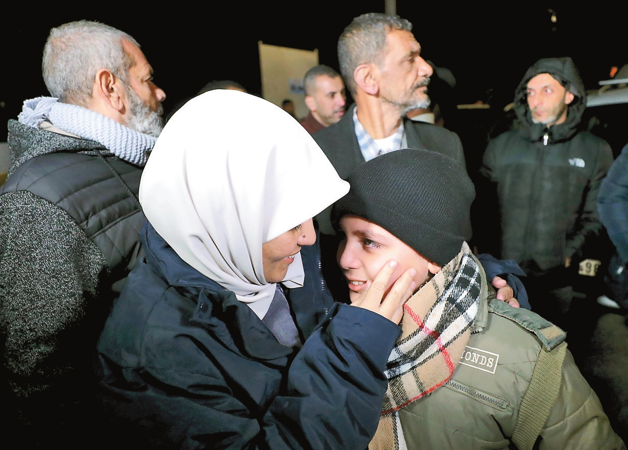 图为在约旦河西岸城市拉姆安拉,获释的巴勒斯坦人与亲人团聚。