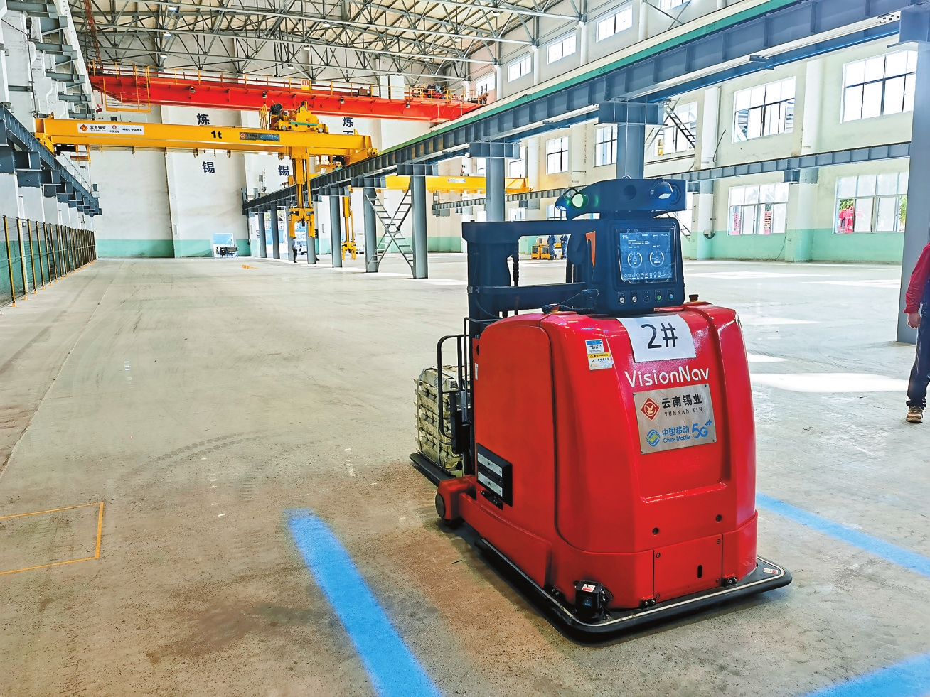 来到云锡的锡锭仓储运转中心,工程师正在调试一台5G运输机器人。小家伙依据后台指令,按照既定的线路前进、转向。如果行进路线上有人阻拦,它还会自动避让。云锡锡业信息化建设工程师李明飞表示:“在移动5G专网上搭建的‘5G+AGV’自主运输系统、‘5G+’智能立库系统,可以在不需要工人的情况下,实现货物的柔性搬运、自主运输,并对所有货物信息进行透明、实时、统一管理。”