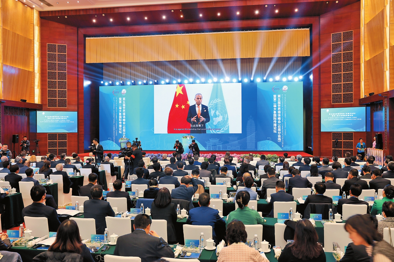12月5日,国内外媒体代表、高校和研究机构专家学者、企业代表相聚第五届世界媒体峰会(云南分会场)暨第二届大象国际传播论坛。