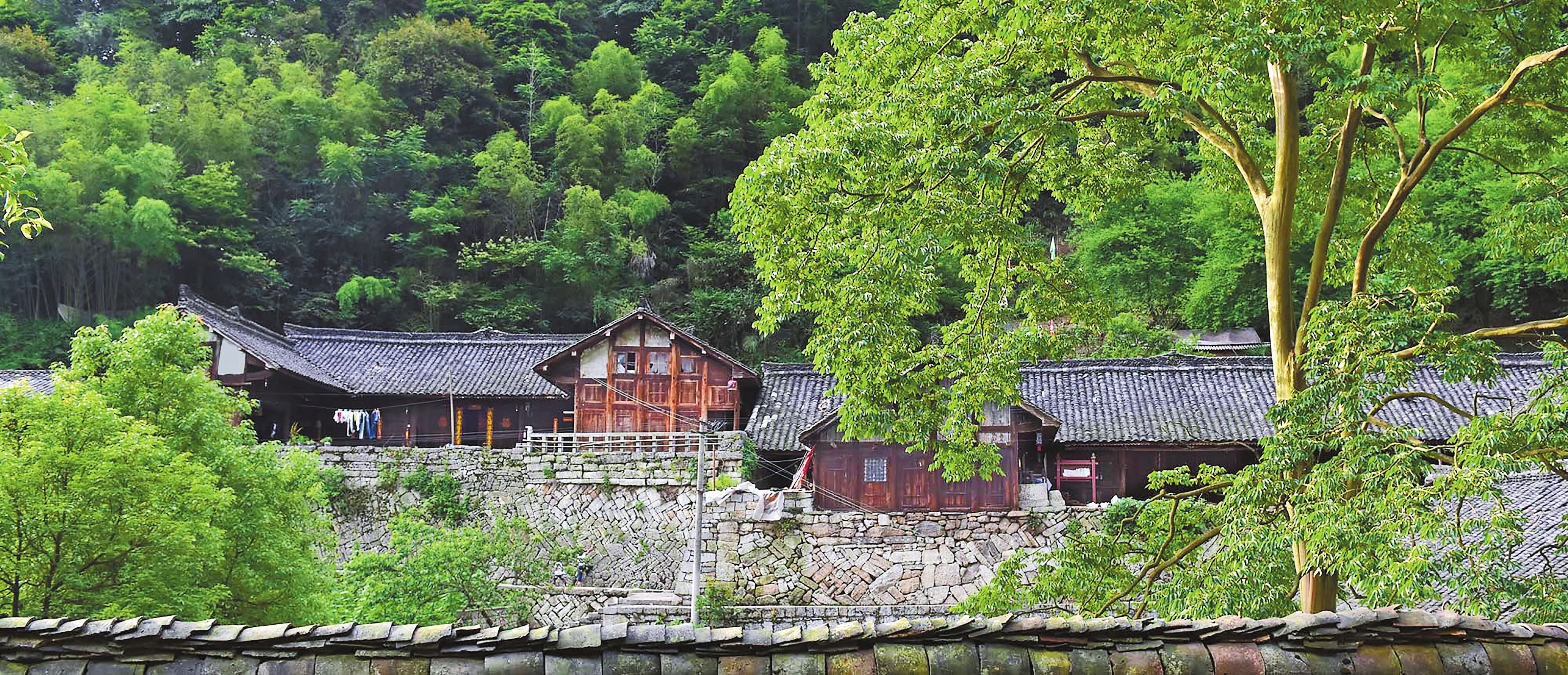 寨内除保留有500多年历史的“人”字形石墙、木质结构苗族老祖屋外,寨后、寨中、寨前中轴线上还生长着三棵紫薇树。特别是矗立于寨尾高处、被称为祖母树的紫薇树高43米、胸径1.63米,树龄超过1000年,为省一级保护古树名木,寨前的那棵树龄也超过100年,三棵紫薇树被称为祖孙树。每年7月至9月,树枝上繁星一样的白色花朵缀满枝头、灿若星辰,为清净古朴的村落增添了一抹美丽和纯净。
