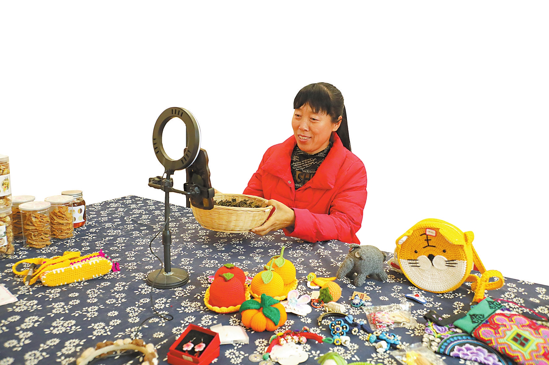 王芬介绍,合作社依托本地优质蚕桑资源,创建了“巧媳妇+蚕丝加工”“巧媳妇+民族特色刺绣”“巧媳妇+特色农业”“巧媳妇+手工编织”等品牌,加工制作丝棉被、刺绣、竹制品、编织产品,有效带动群众增收。今年合作社开始尝试直播带货,目前已积累了一批粉丝,订单量不断增加。