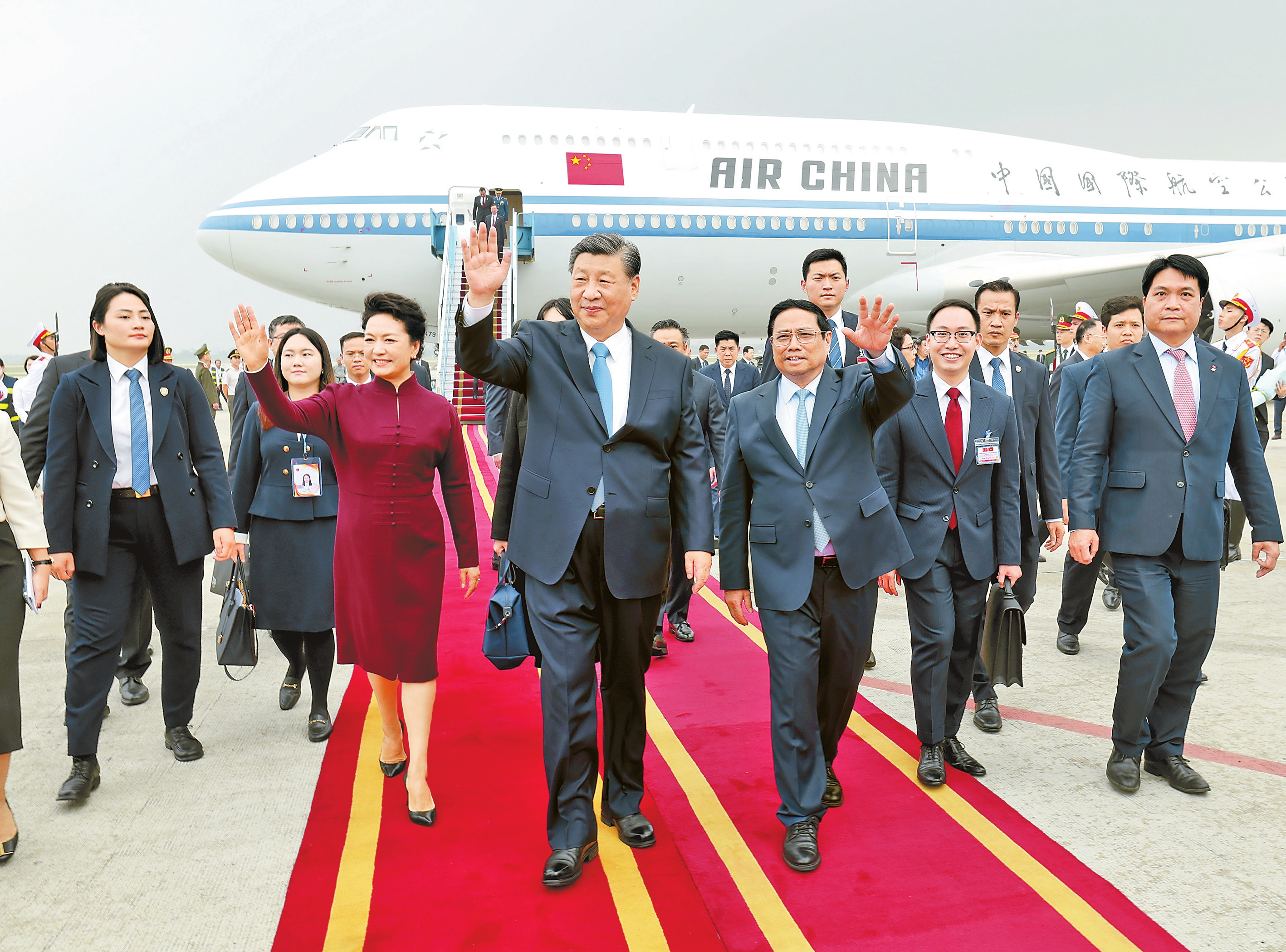 当地时间12月12日中午,中共中央总书记、国家主席习近平乘专机抵达河内,应越南共产党中央委员会总书记阮富仲、越南社会主义共和国主席武文赏邀请,对越南进行国事访问。新华社记者 庞兴雷 摄