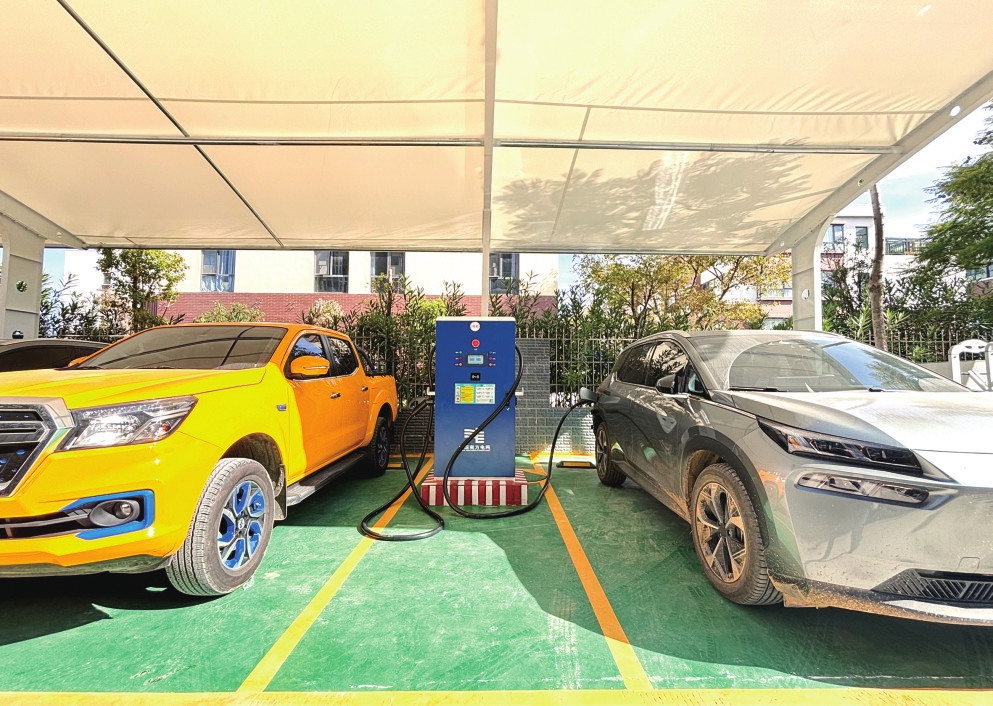 全电动化交通出行,采用节能环保箱变供电,建设充电桩2套(每套160千瓦),满足所内和附近电动汽车充电需求。供电所生产工作用车全部替换为电动汽车,实现交通出行零碳排放,对比燃油车每年减少碳排放5吨。