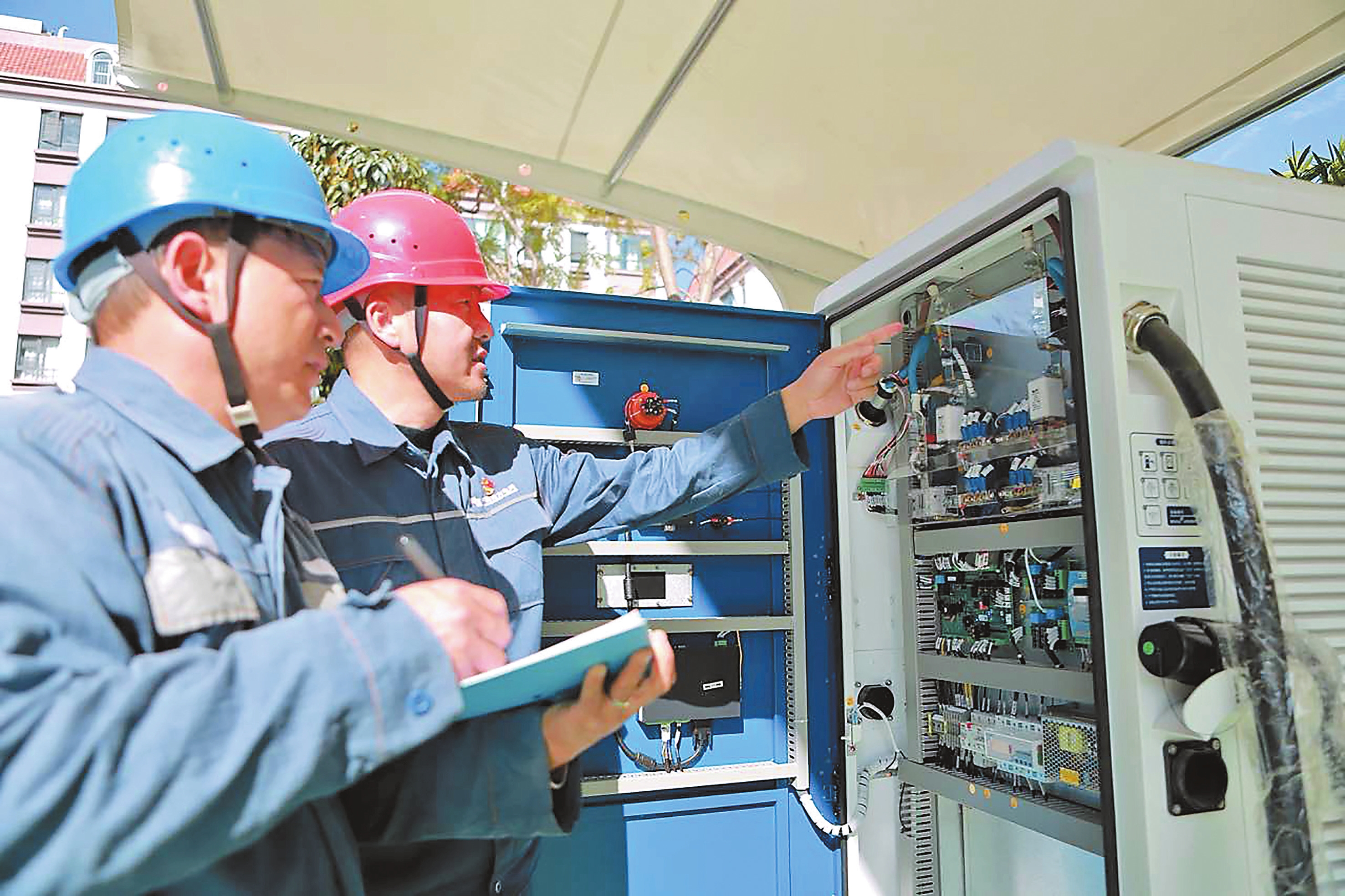 移动储能系统建设,建设50千瓦/100千瓦时储能系统,可灵活布置于不同的应用场景,布置于所区时可实现光、储、用协调配合,提升电能质量水平和供电可靠性,提升分布式能源的消纳水平;布置于台区可以解决短时配变重过载、低电压、三相负荷不平衡问题,可以作为应急电源代替柴油发电机实现绿色保供电。