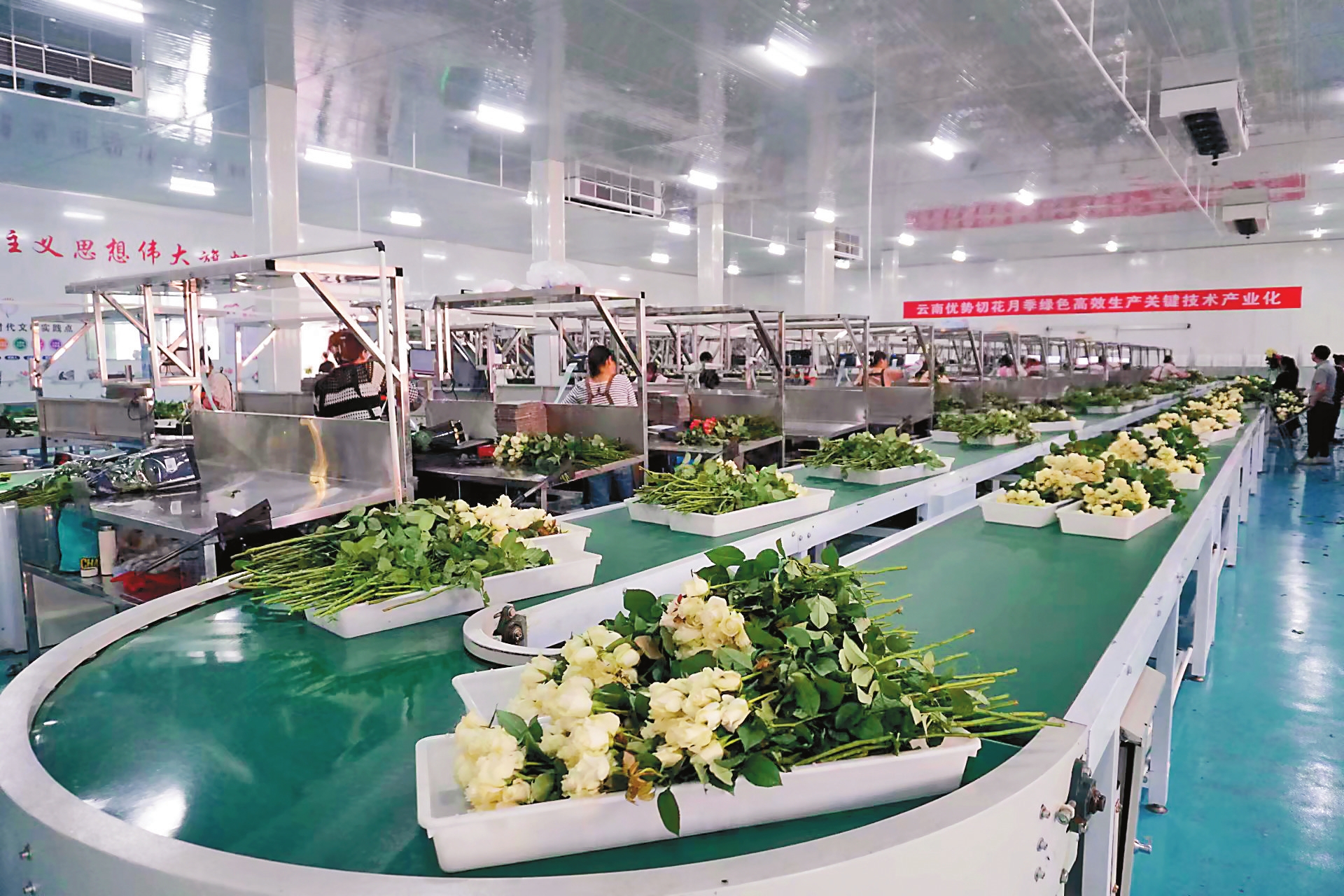 姚安县云秀花卉有限公司的生产车间内,智能分拣机正以每小时1.1万枝的速度,通过高速成像识别技术对鲜花进行精准分拣,并由工人们打包后运往全国各地。“现在公司每年产值能达2700万元以上,产量在2500万枝。公司每天可以为当地群众提供100余个就业岗位,为每个人带来每年不少于2万元的经济收入。”该公司负责人段云晟介绍。