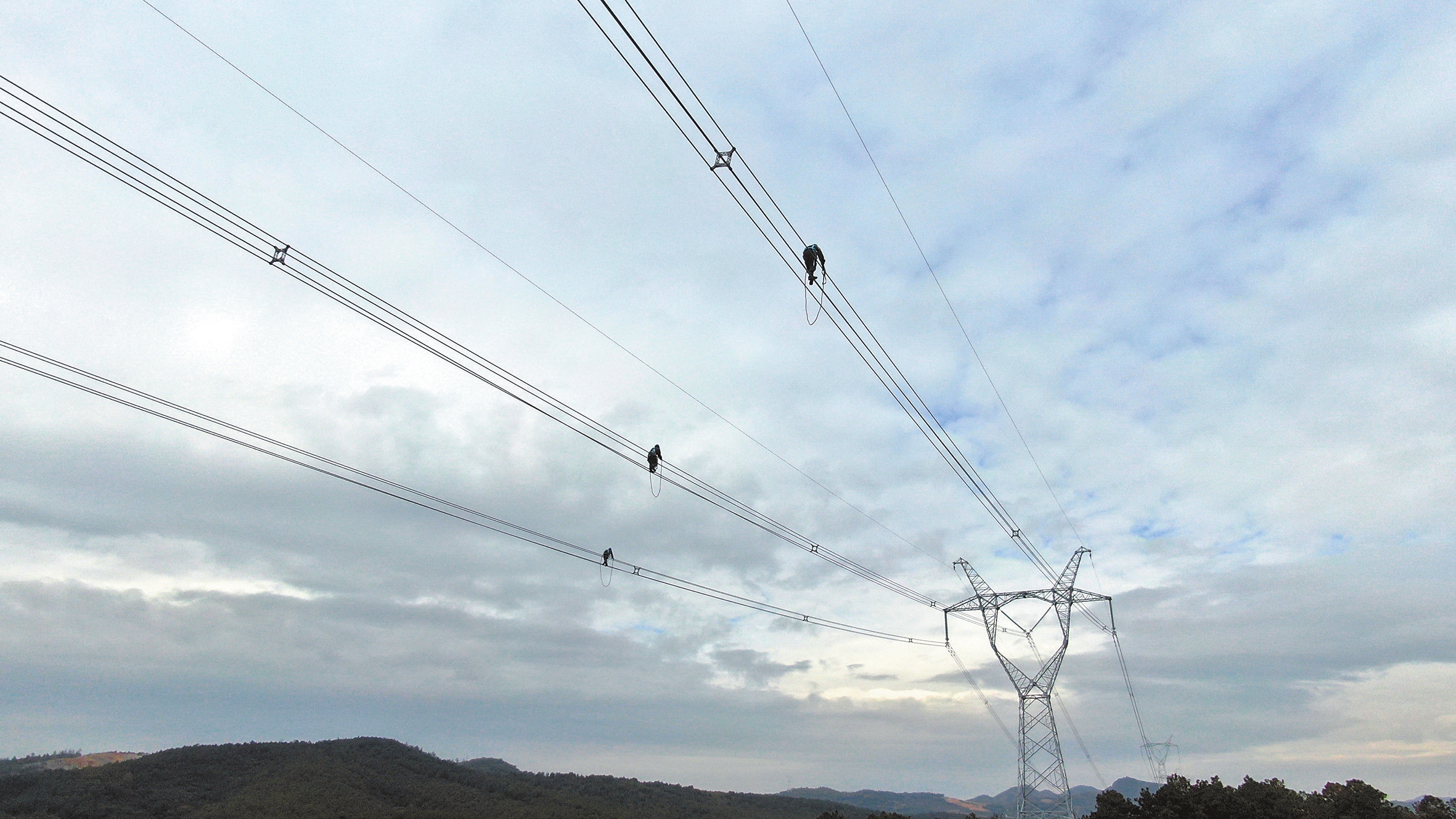 “高空走线验收不同于地面验收。在60米高空,轻微的抖动都会使导线发生较大晃动,在导线上走动就像走钢丝。”曲靖供电局输电管理所线路六班工作人员杨艳华说。验收人员在集中注意力保证安全的同时,还要检查导线、金具安装情况,确保不放过任何一处本体缺陷。