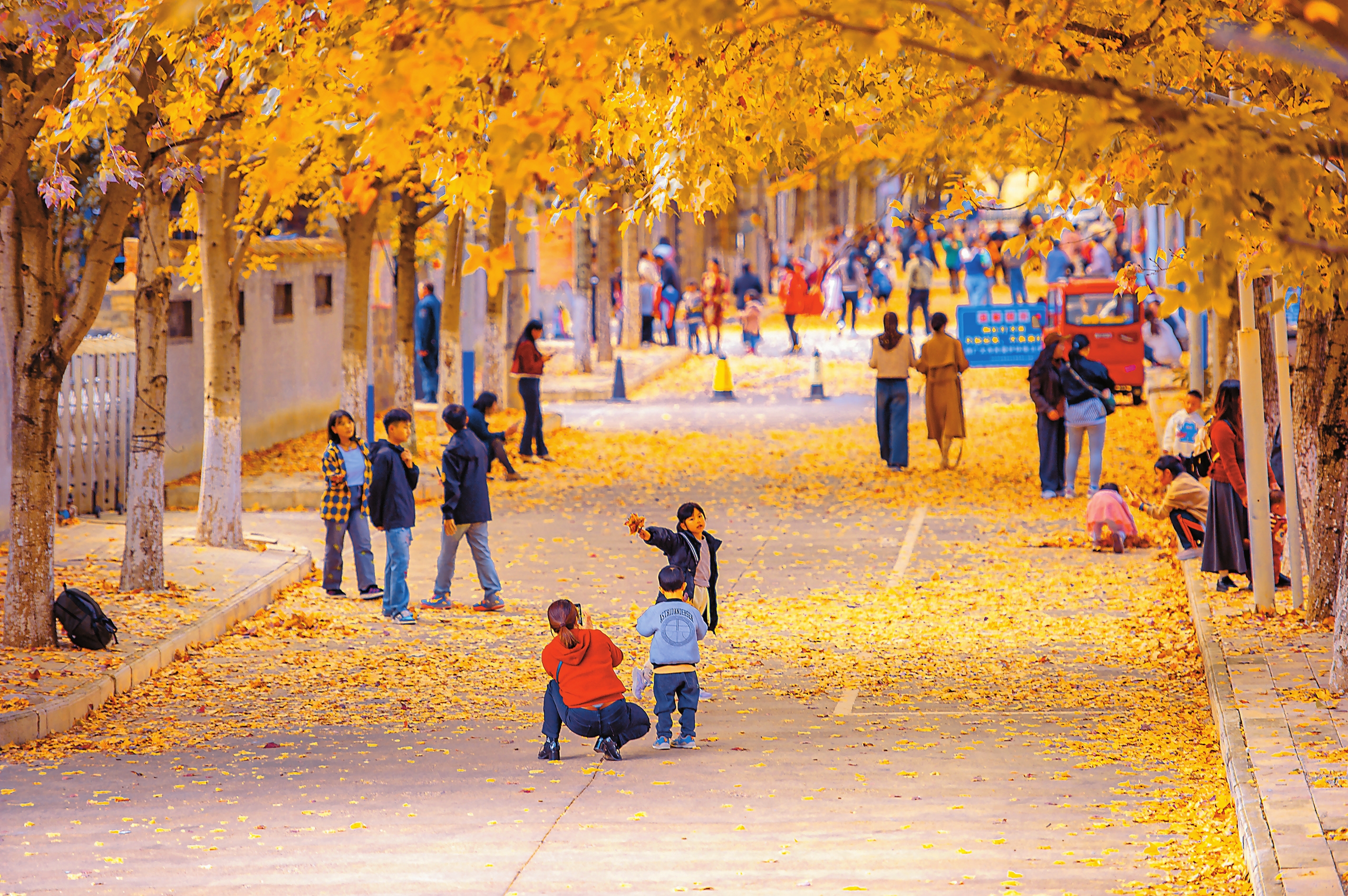 仲冬时节,砚山县和谐路飘落的枫叶满地金黄,吸引许多人打卡拍照。“每年都来这里拍视频,这样的美景让人心情愉悦。”居民苟向英说。