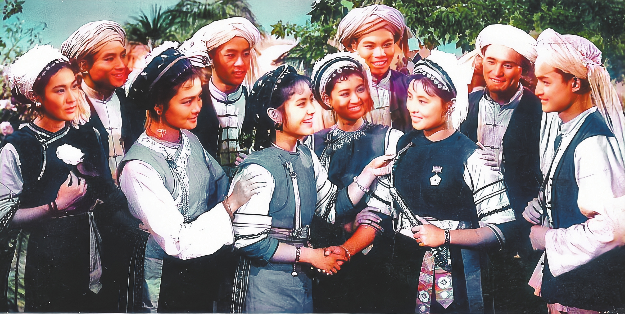 1959年10月,电影《五朵金花》作为国庆十周年献礼片在全国公映。影片讲述了云南大理两位白族青年阿鹏与金花的爱情故事,展现了人与人之间纯真、质朴的情感,描绘了一幅积极、乐观、上进的社会主义边疆少数民族的新生活画卷。当时的新中国是年轻的、朝气蓬勃的,影片勾勒的美好场景,也成为各民族共有精神家园的艺术表达。