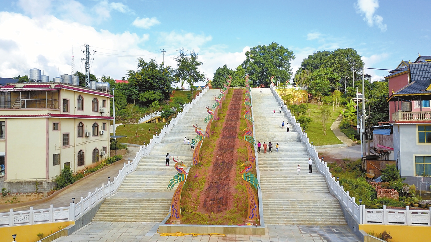 “在没有启用这个广场之前,外地游客参观勐卧总佛寺,只能把车停在寨子的路口,要走很远的路来参观,非常不方便。很多时候还很拥堵,环境也不好。”景谷市民刘应超告诉记者,现在有了这个广场,游客和市民都可以把车停放在这里,顺着新建的踏步阶梯走上来参观,很方便。