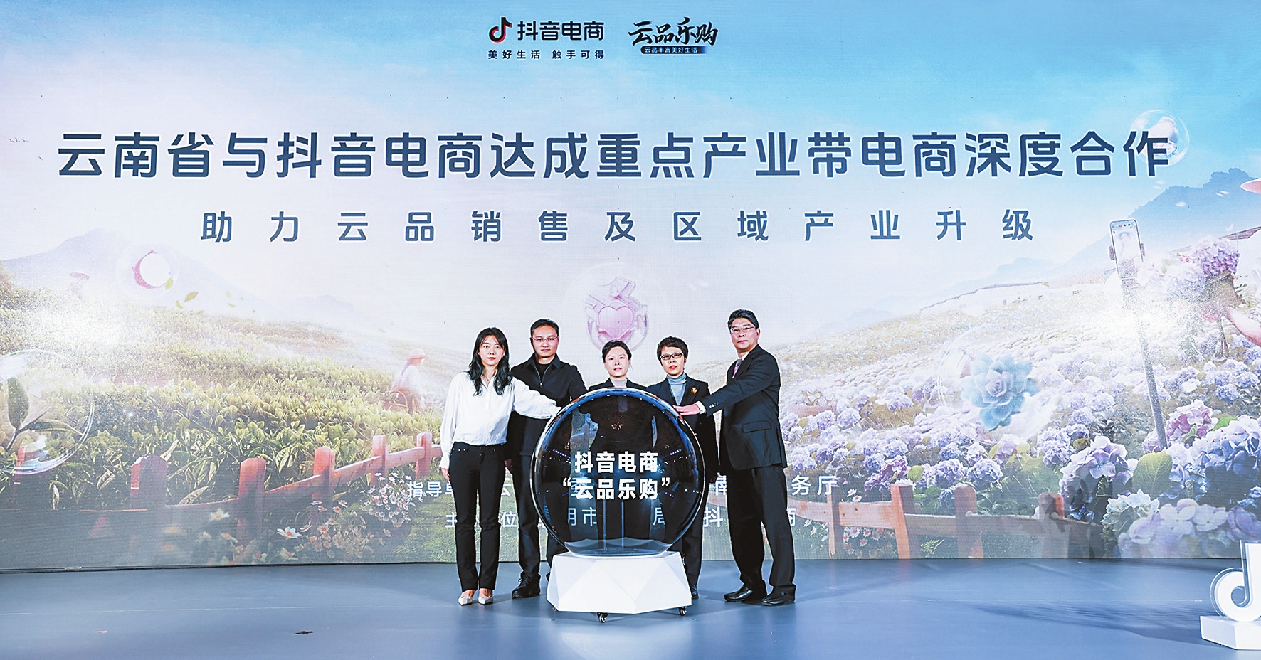 抖音电商产业带发展论坛日前在昆明举行。会上,抖音电商宣布启动与云南省重点电商产业带的深度合作,抖音电商“云品乐购”专区正式上线。双方将通过优势互补和资源共享,共同营造新电商发展良好生态,助力云南好物热销全国,加快云南特色产业数字化转型,推动云南电子商务高质量发展。