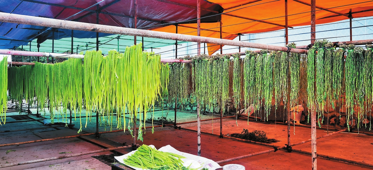 光美还不够,为了发展壮大村集体经济、促进村民持续增收,文乐村党总支带领群众发展贡菜产业。截至目前,文乐村建设贡菜基地100余亩,还通过自产、自晒、自销的方式,就地吸纳富余劳动力就业。同时,制作干贡菜产生的废叶、废皮还能够作为养殖饲料继续发挥价值。产业发展起来了,钱袋子鼓了起来,生活环境绿了起来,村民的日子越来越好。