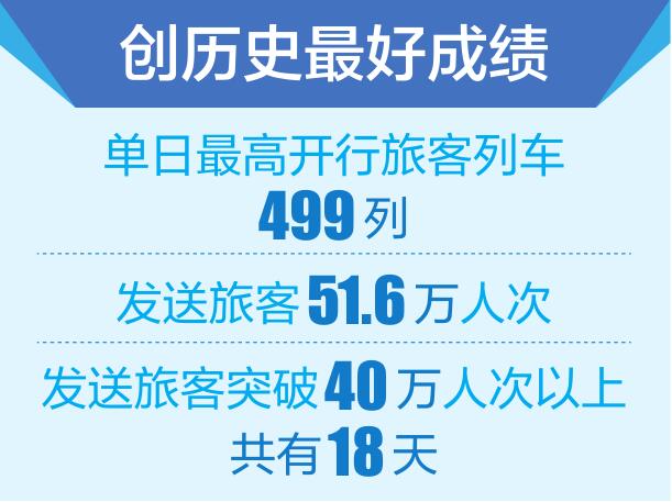 本报讯(记者 李承韩 通讯员 张伟明) 记者从中国铁路昆明局集团有限公司获悉,截至12月17日,我省铁路今年累计发送旅客达9003万人次,创历史最好成绩。其中,单日最高开行旅客列车499列,发送旅客51.6万人次,发送旅客突破40万人次以上共有18天。