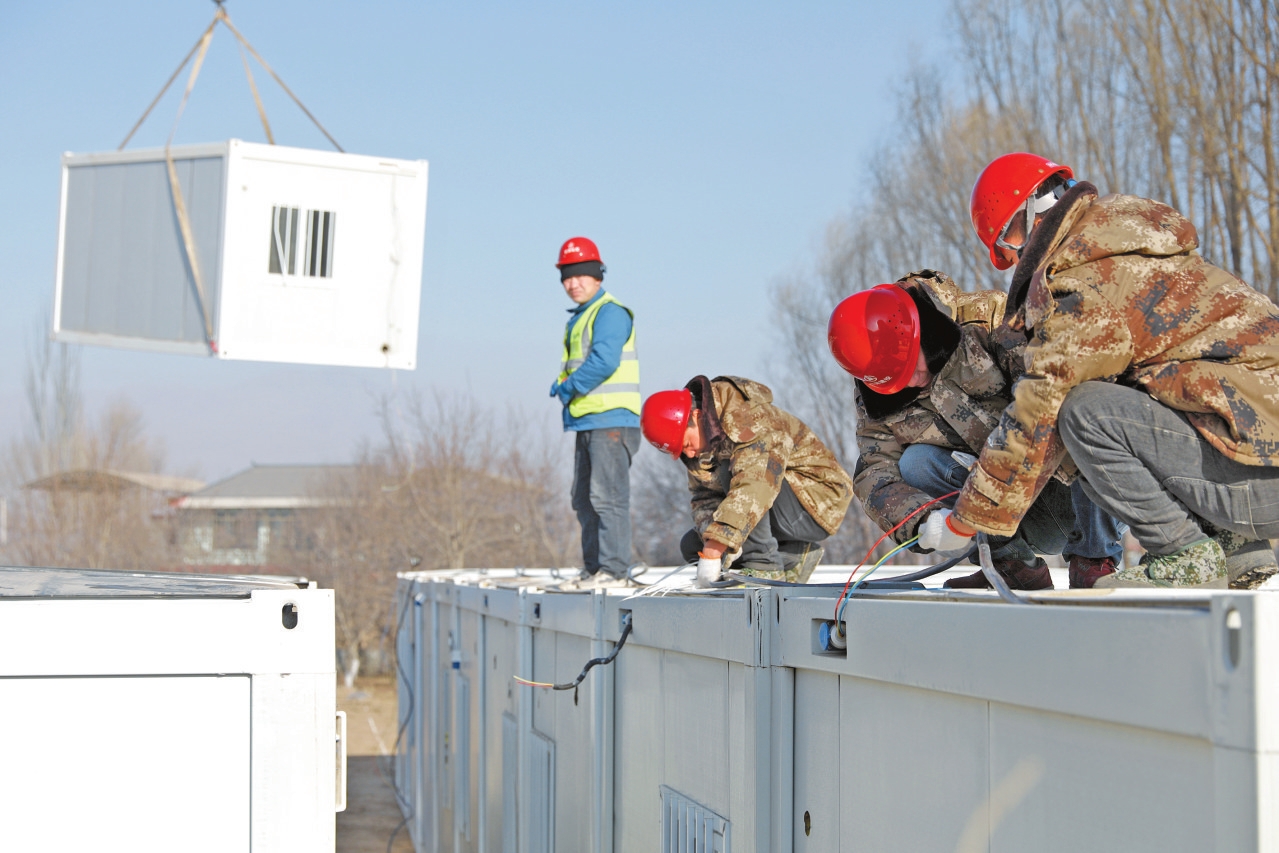 在甘肃省积石山县柳沟乡阳山村的一处空地上,大型机械设备正在吊装活动板房。工作人员介绍,这种板房运来时已完成搭建,一间板房的安装时间压缩至半小时内,后续接入水电等就可入住。“我们正在加班加点,让受灾群众能尽快住进来。”