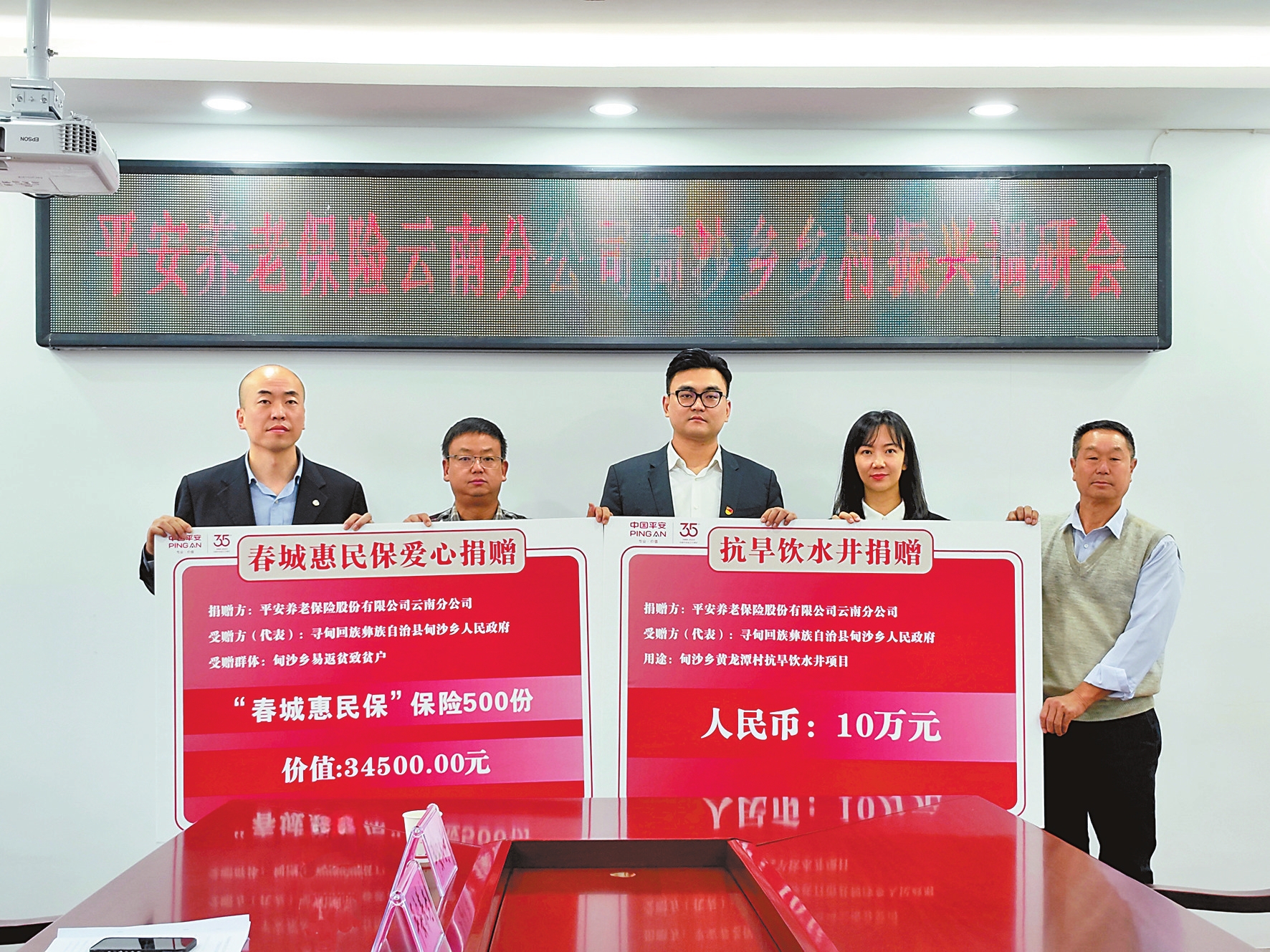 此外,平安养老险云南分公司充分发挥保险行业的特点及优势,体现保险保障的“稳定器”“助推器”功能,定向为甸沙乡500名监测户捐赠保额5亿元(保费规模3.45万元)的“春城惠民保”。据了解,甸沙乡500名监测户属于脱贫不稳定户、边缘户,因疾病受伤、缺乏劳动力、子女读书等原因易造成返贫,“春城惠民保”将为这部分群众提供风险保障。另一方面,公司大力做好普法及风险防范宣传。帮扶小组和志愿服务队定期走访入户宣传和排查,发放禁毒禁赌、防电信诈骗、安全生产等相关宣传页,为群众讲解相关法律法规和基础常识,借助植树活动、党建交流录制音频视频,号召村民共同维护良好社会局面。
