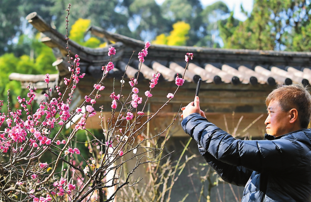 图②:市民游客在昆明市黑龙潭公园赏梅。