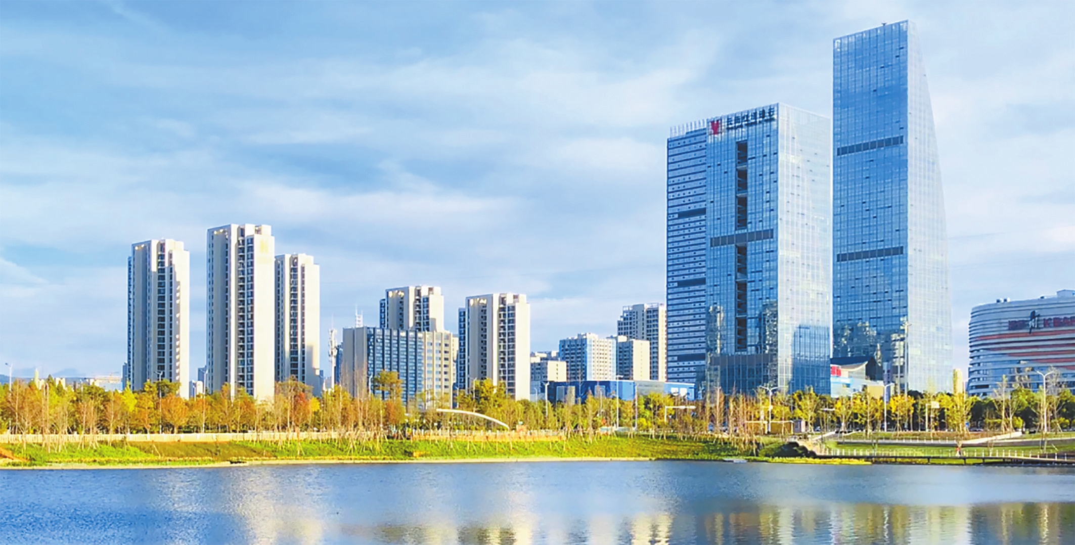 呈贡中央公园东起昆明南站(高铁站)的白龙潭水库,西至滇池的卧龙古渔村附近,南侧是贯通的驼峰街,北侧是锦绣大街。沐春湖公园规划了阳光草坪、滨水步道、森林木屋、都市共享稻田等区域,通过生态方式进行水环境整治。同时,植入人文活力功能,水生态与海绵相结合的技术手段,长效保障水环境整治成果,涵养水源,是集水环境治理、海绵城市与城市公共服务于一体的公共空间场所。