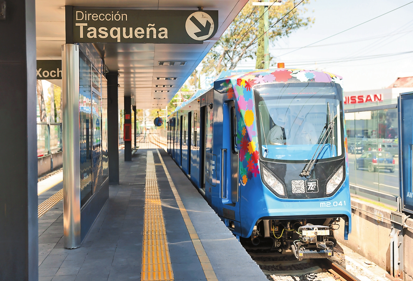 图为1月3日,在墨西哥首都墨西哥城,轻轨列车驶入一处轻轨站。