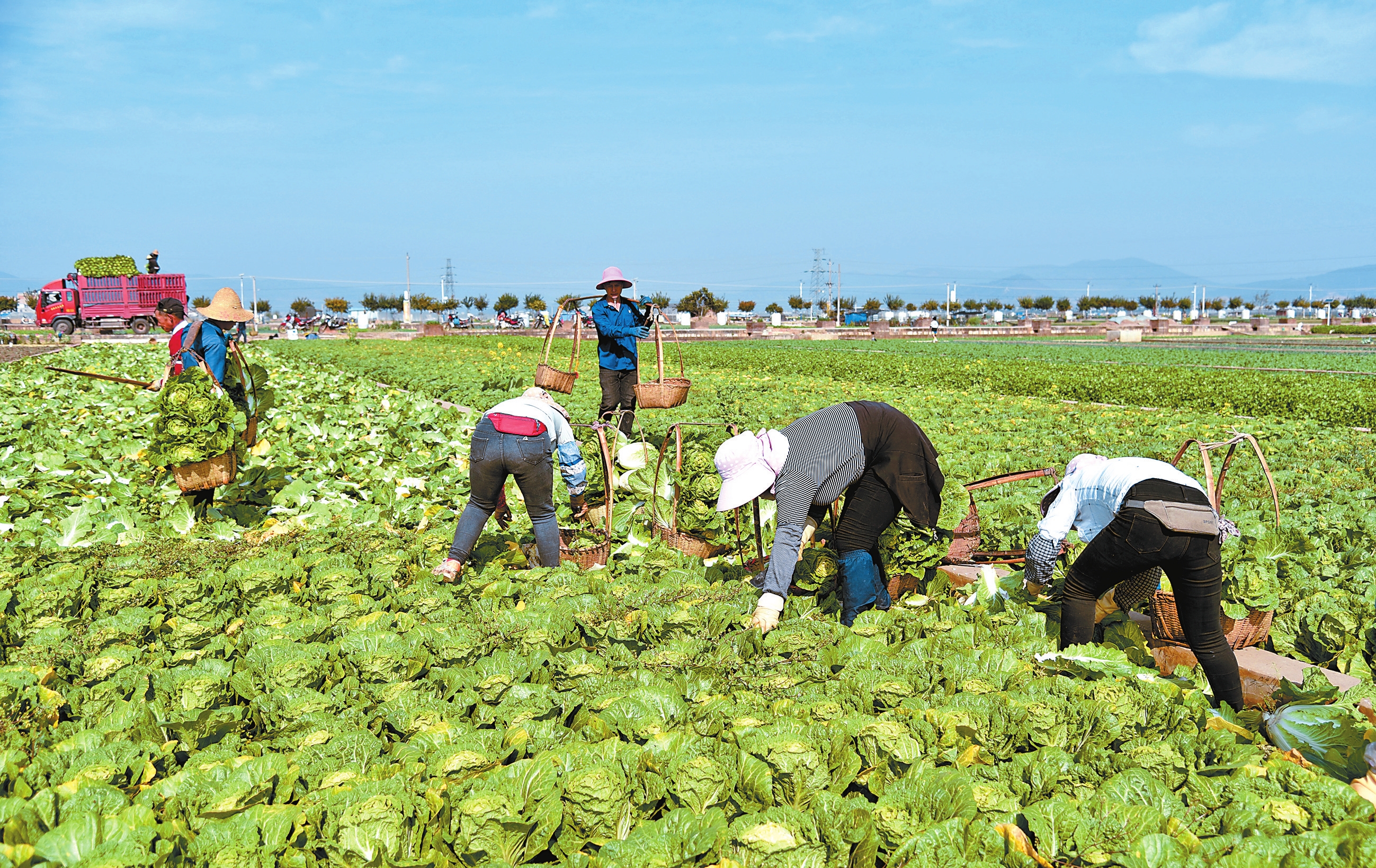 寒冬时节,通海县田间地头一派忙碌景象。当地种植户抢抓冬季蔬菜上市窗口,抓紧采收白菜、甘蓝、青笋、花椰菜、白花、豆类等30多个品种的蔬菜,加紧销往广东、西安、天津、北京等地,每天都有300多辆满载蔬菜的货车驶往全国各地。此外,通海蔬菜还出口泰国、越南、老挝、缅甸、日本、韩国等国家。