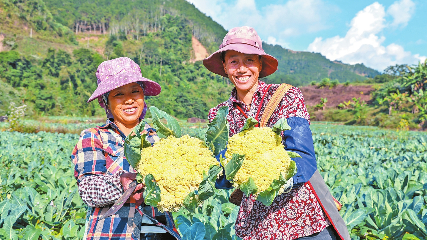 眼下,绿春县大水沟乡月牙河畔蔬菜复种示范基地利用当地地势平坦、灌溉水源充足的优势,种植了1000余亩蔬菜。通过“村集体经济+公司+农户”模式,采取土地流转、基地务工等形式,有效推动村级集体经济发展,累计带动本地2000余农户增收。