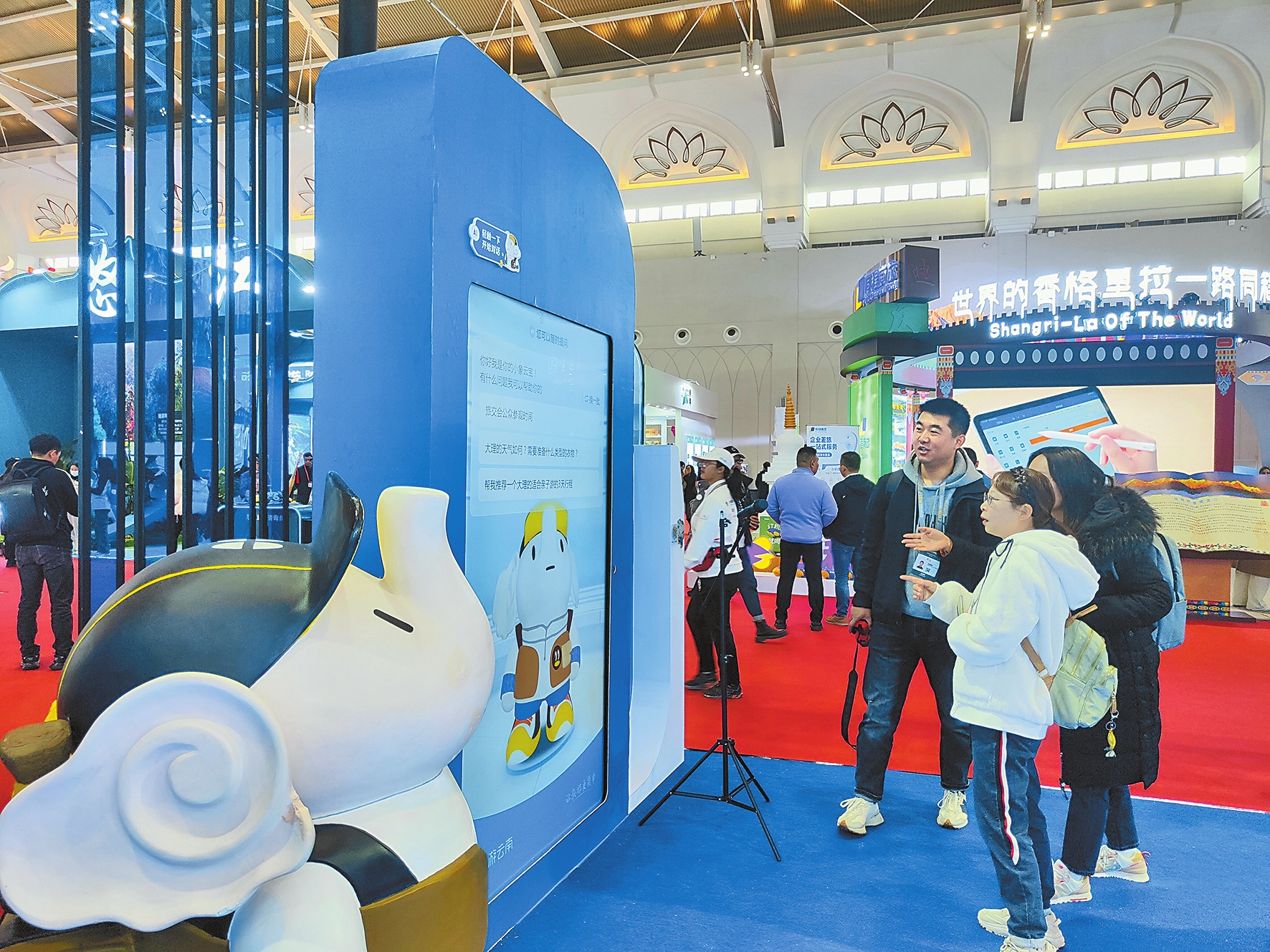 “请帮我规划一个3天游元阳的旅行线路。”观众轻触对话框问道。不一会儿,屏幕上就显示出包括车程、住宿、美食等在内的旅行计划……这是2023中国国际旅游交易会“一部手机游云南”展台上,现场观众与可爱的AI数字人“小象云宝”互动的一幕。