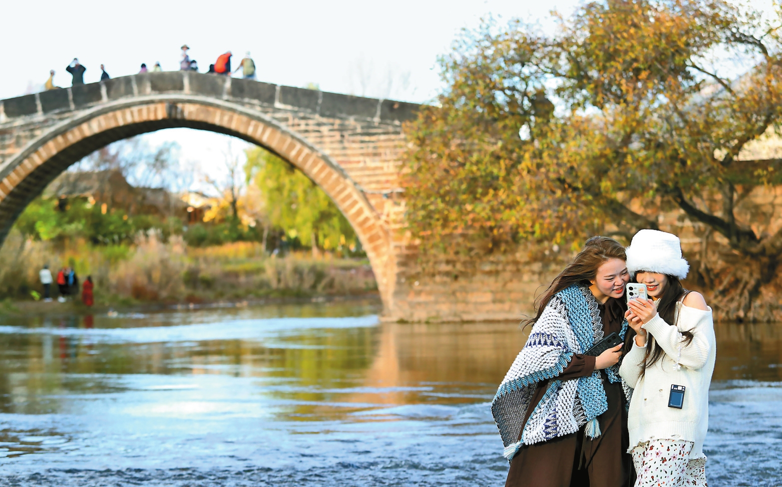 冬日里的沙溪古镇,阳光正好。各地游客慕名而来,在寺登街上漫步,选购特色工艺品;在玉津桥上吹风,穿上民族服装旅拍,流连于质朴、静谧又充满诗情画意的古镇风景中,让“有一种叫云南的生活”更加有滋有味。