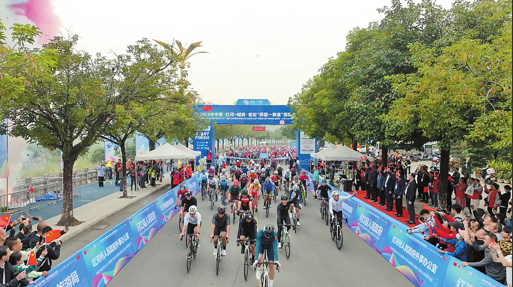 辞旧迎新,红河哈尼族彝族自治州各地体育赛事好戏不断。去年12月9日至10日,2023年中国·红河—越南·老街“两国一赛道”国际自行车赛在河口瑶族自治县火热开赛,来自世界各地的738名选手汇聚一堂,演绎中越风情的“速度与激情”。
