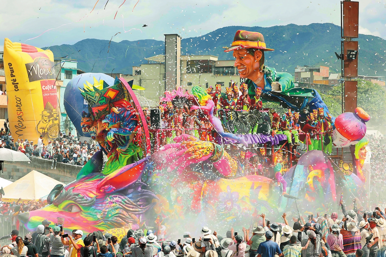 每年新年之际,哥伦比亚帕斯托都会举行“黑与白”狂欢节活动。这一狂欢节于2009年被联合国教科文组织列入人类非物质文化遗产代表作名录。图为1月6日,人们在哥伦比亚帕斯托参加“黑与白”狂欢节活动。