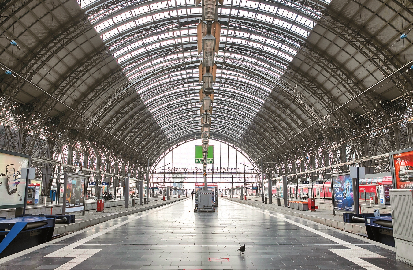 因薪资和工作时长问题,德国火车司机工会宣布,从1月10日凌晨2点到12日下午6点进行全国客运罢工。德国铁路股份公司称,新一轮罢工将再次对所有德国铁路运营产生巨大影响。这是1月10日在德国法兰克福主火车站拍摄的空荡的站台。