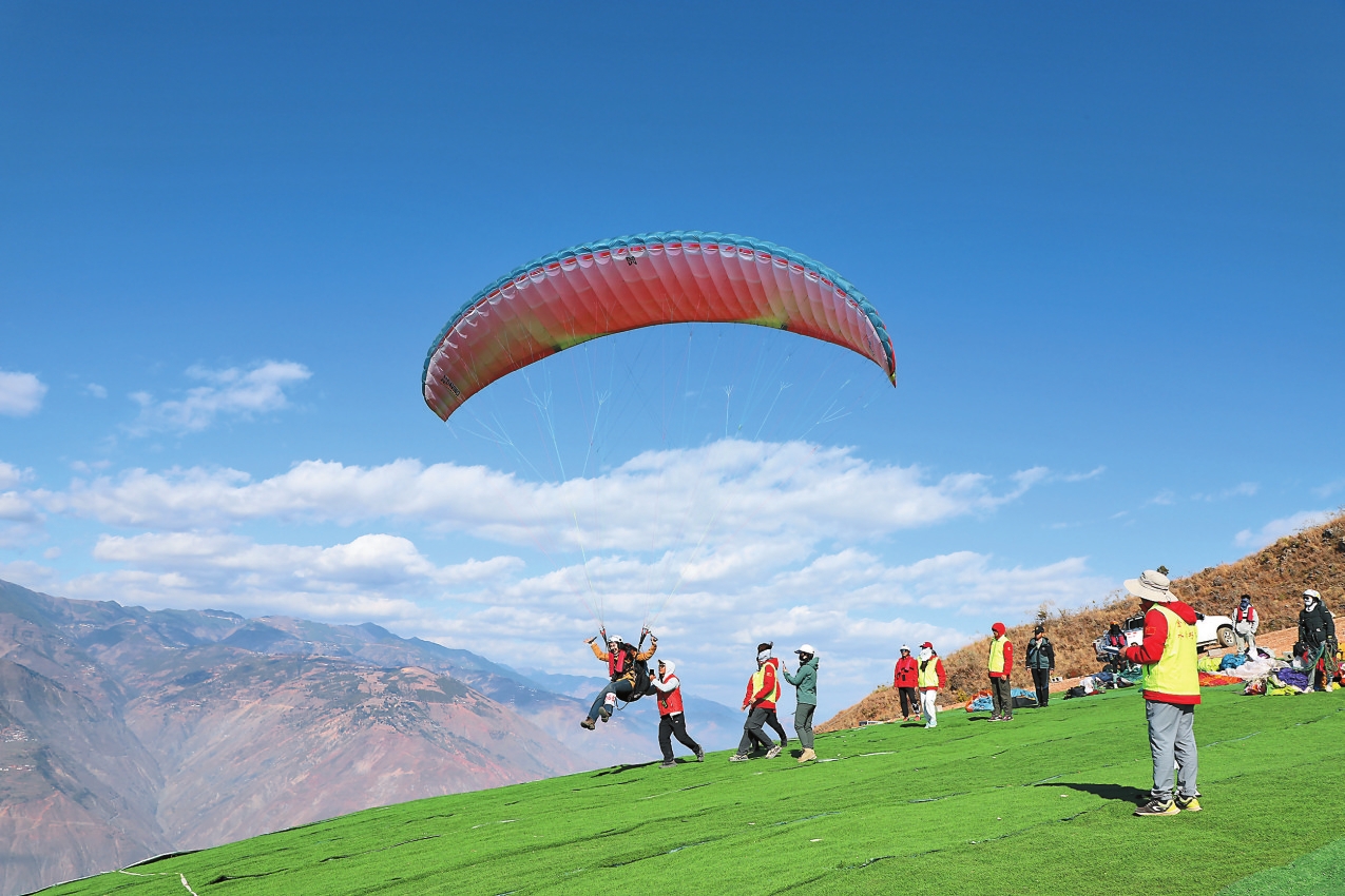 巧家蒙姑滑翔伞项目基地起飞场总占地面积77.67亩,降落场主降落区占地面积约30亩,主营项目有滑翔伞、动力伞及热气球游览飞行服务。项目一期建成运营后,不仅丰富了游客翱翔金沙江、俯瞰美景的空中体验,还可作为学员培训、举办赛事的重要场地,对巧家县打造低空旅游和体育赛事品牌、推动“产、城、人”融合发展具有重大意义。本报记者 沈迅
