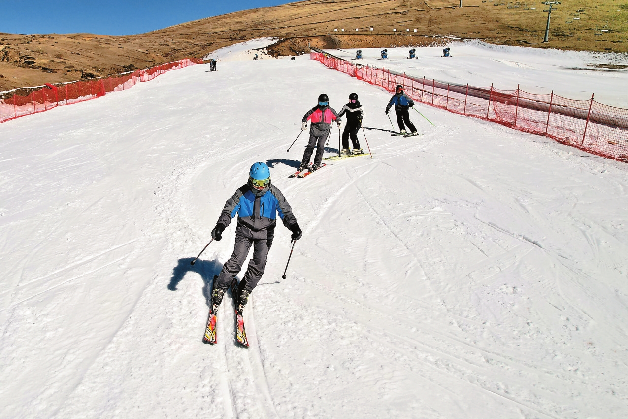 走进会泽大海草山滑雪旅游度假区游客接待大厅,雪板、雪鞋、雪杖等雪具一应俱全,滑雪场拥有初、中、高三级滑雪道,滑雪圈、雪地卡丁车、雪地坦克等20余种嬉雪设备和项目,滑雪爱好者们在这里尽情感受冰雪运动的魅力。“我已经滑了1个小时了,这里空气好、气温适合,已经感受到了滑雪的乐趣,很是开心。”来自东北的游客关心说。