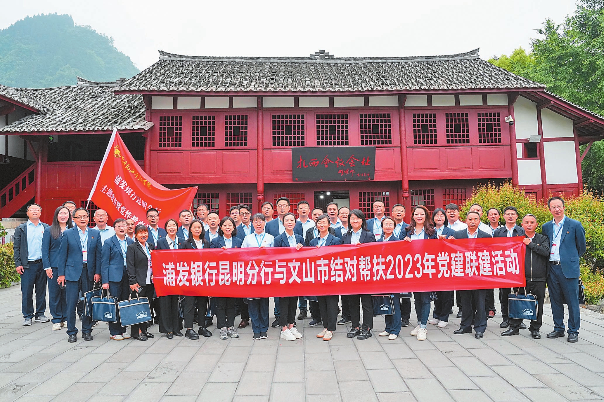 2021年7月5日,结合党史学习教育,浦发银行昆明分行联合沪滇协作“多位一体”党建联建共建成员单位举办“党的波澜壮阔100年专题辅导报告会”,560人通过云会议系统参加了报告会;2022年8月5日,浦发银行昆明分行与文山市共同举办2022年定点帮扶党建联建主题培训,邀请中国农业大学教授,围绕乡村振兴中的美丽村庄建设,向全市101个乡村振兴重点村(社区)驻村第一书记和其他工作人员,讲解政策框架、实践案例和产业发展等内容;2023年5月26日至27日,浦发银行昆明分行联合文山市乡村振兴局以及4个帮扶村党支部赴昭通市威信县扎西干部学院开展党性教育活动,引导广大党员干部传承红色基因,牢记初心使命,强化责任担当,继续以实干精神奋力推进乡村振兴工作……