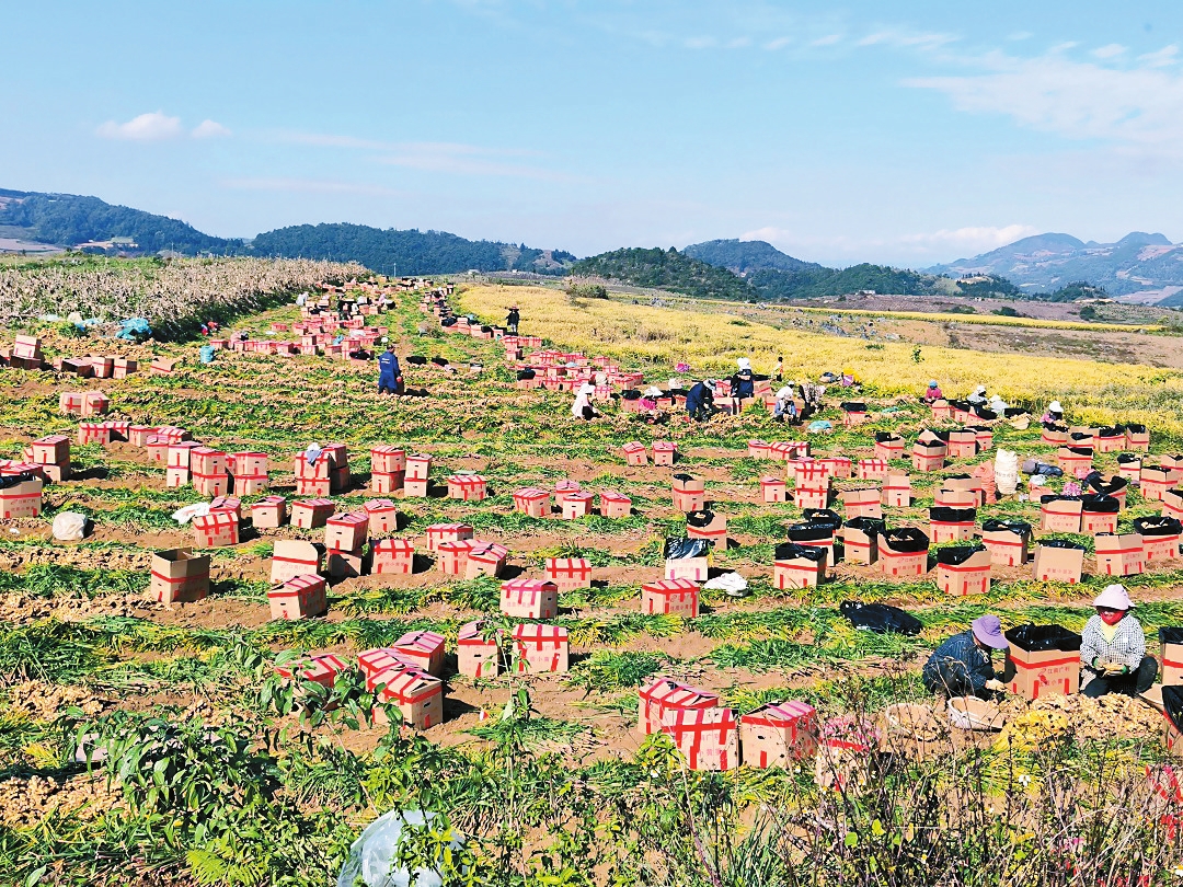 冬季的蒙自市冷泉镇,空气中弥漫着小黄姜的香气。正值小黄姜丰收季,当地姜农趁着晴好天气,抓紧拔姜、去泥、修叶、装箱、搬运,现场一派热火朝天景象。