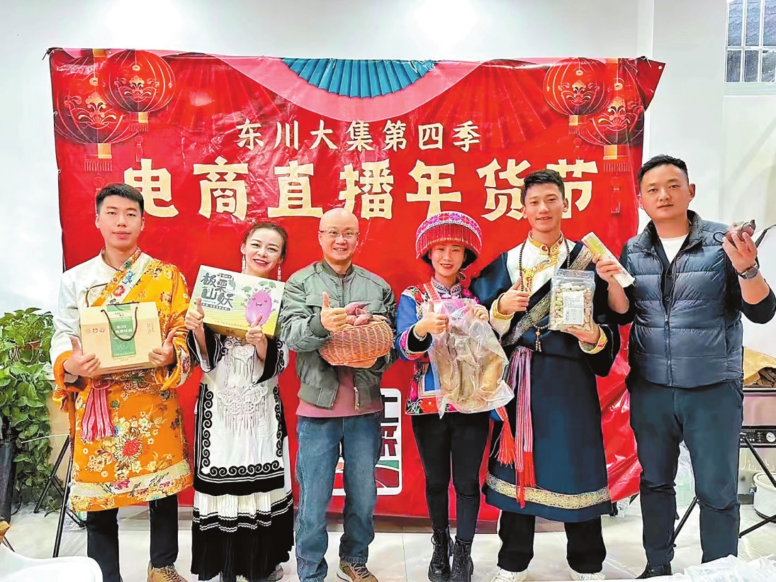 元旦假期,东川大集融入节日主题元素,举办“红土优采”电商直播年货节,邀请云南知名主播为东川农特产品直播带货,打响东川区域农产品公用品牌“红土优采”。“红土优采”电商直播节上,12家优质东川商贸企业“红土优采”年货卡及营收达53万元。电商集市上,多位本土网络大咖通过临港左岸现场及线上直播带货实现销量4万余单,销售额200万余元。
