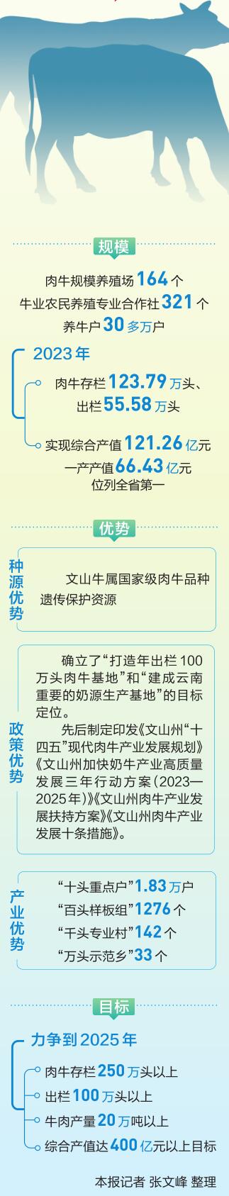 从传统养殖到遗传基因育种,从农户散养到形成“龙头企业+合作社+农户”发展格局,从“只管养牛”到全产业链发展……文山州紧紧牵住提质增效“牛鼻子”,朝着成为云南打造世界一流“中国牛都”的核心产区奋力前行。