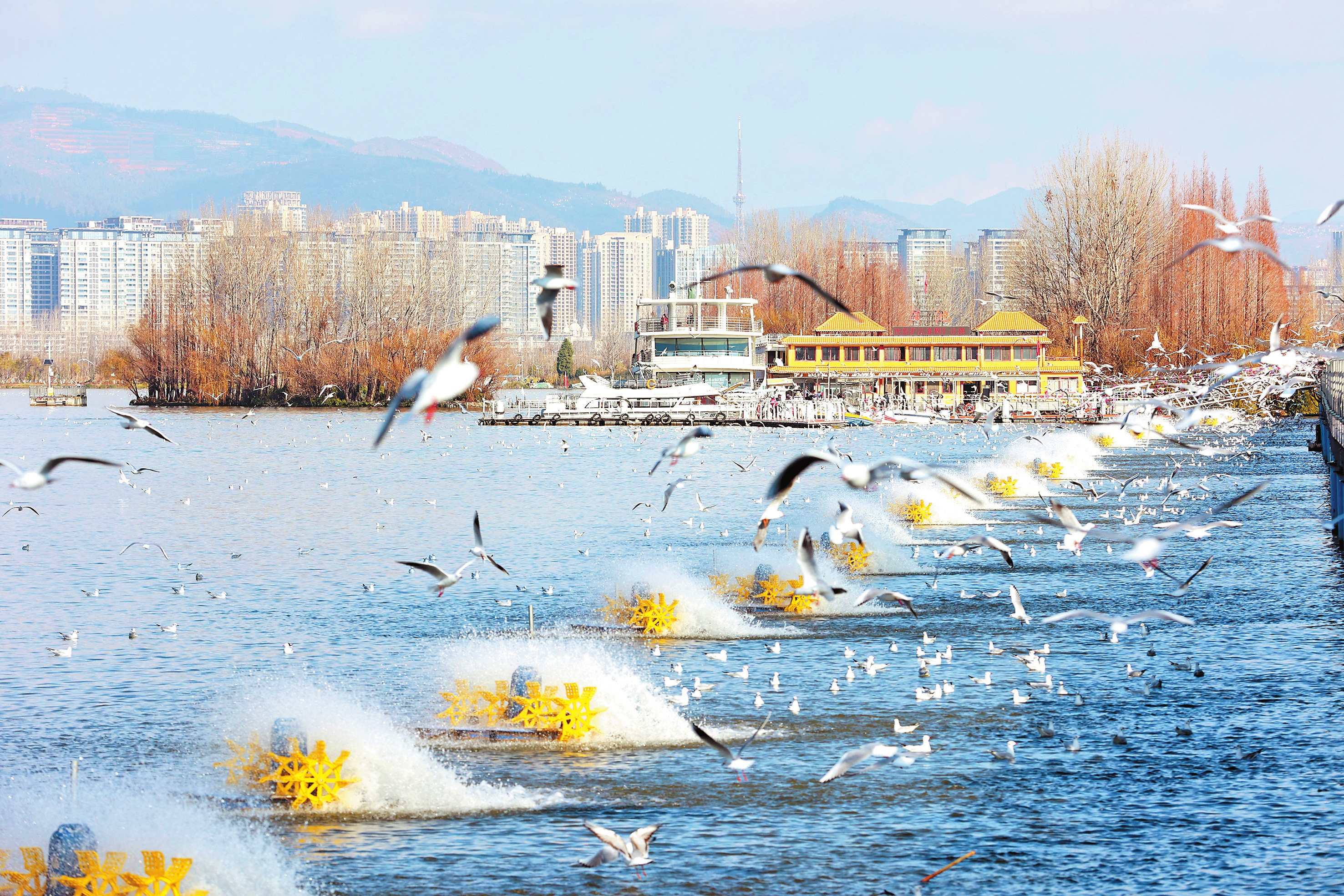 隆冬时节,云南多地依旧温暖如春,“昆明蓝”“红嘴鸥”“红水杉”等名片吸引全国各地游客纷至沓来,到这里享受冬日暖阳,感受“有一种叫云南的生活”。图为昆明滇池大坝附近红嘴鸥聚集,成为冬季游览热门地。本报记者 陈飞 摄