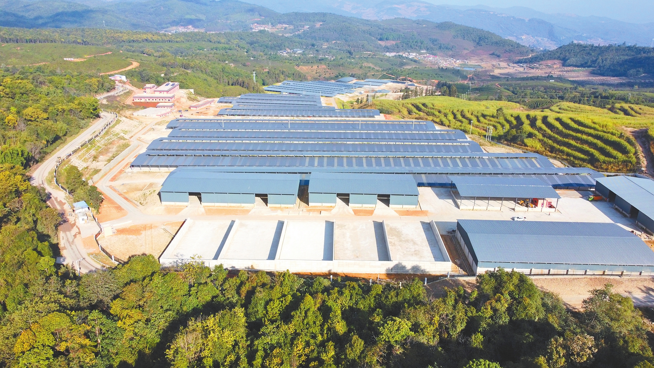 来到正在建设的西盟县勐卡镇娜妥坝社区边境产业园,万头肉牛养殖示范牧场已经基本建设完工,施工人员正在对养殖牛舍进行“大改小”标准化配置,并开展养殖基地清理、绿化等收尾工作,预计今年3月前基地有望迎来首批肉牛。