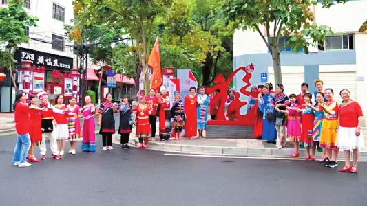 “中华民族一家亲,同心共圆中国梦”“党在我心中,永远跟党走”……在盘龙区鼓楼街道桃源社区的街道、公园、广场,随处可见民族团结进步标语,潜移默化地凝聚起人们的民族团结意识。
