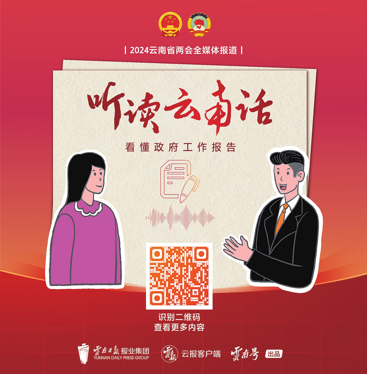 在今年省两会全媒体报道中,云南日报报业集团云报客户端策划推出交互原创手绘H5产品《听读云南话 看懂政府工作报告》,让人们在熟悉的乡音中,用不一样的方式“打开”政府工作报告。