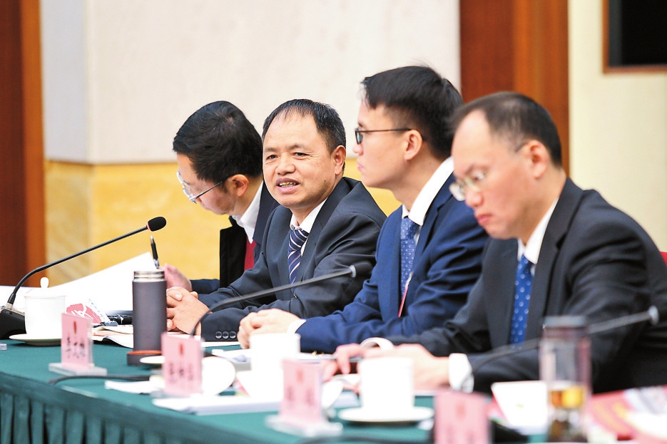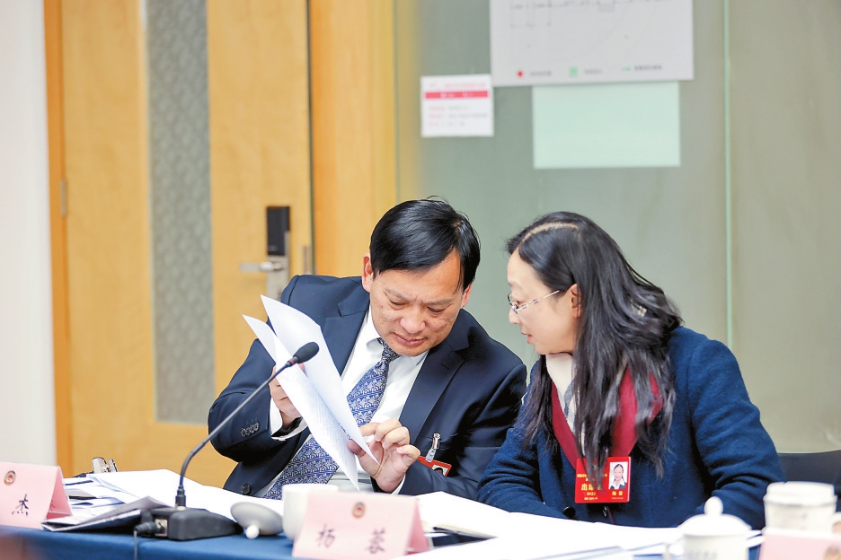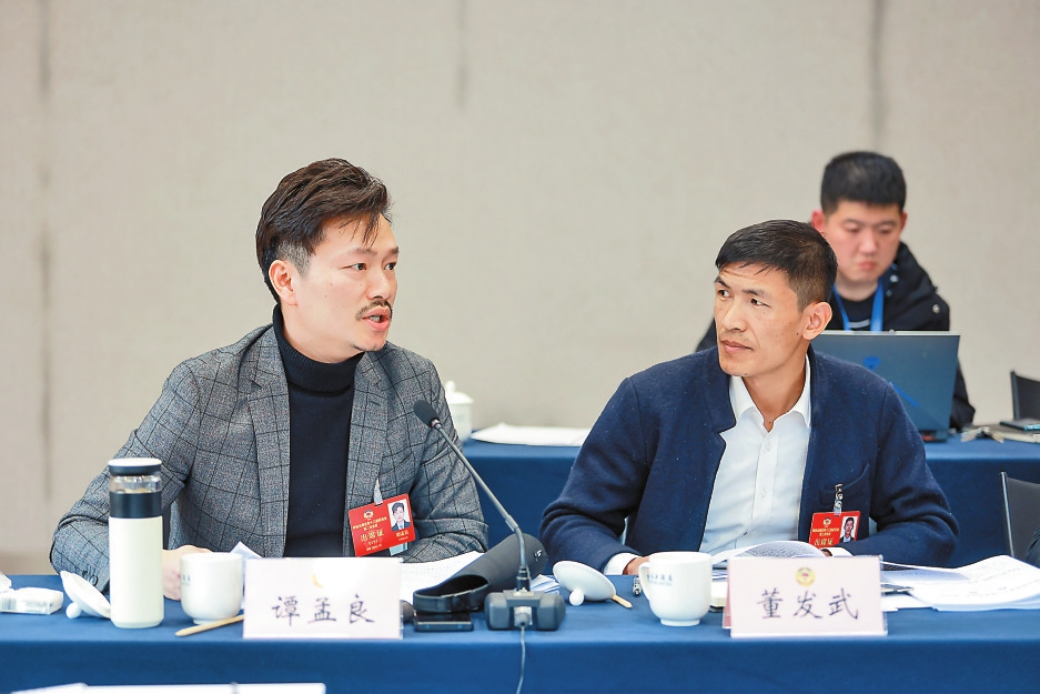出席省两会的代表、委员热议政府工作报告等。本报记者 摄