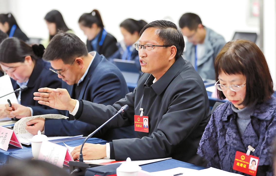 省人大代表审议审查政府工作报告等。本报记者 杨峥 雷桐苏 陈飞 见习记者 高吴双 摄