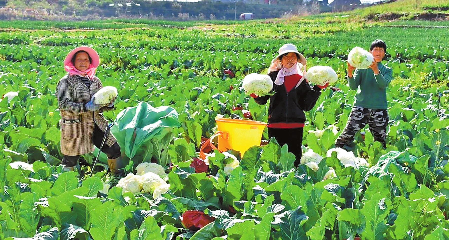 正在采摘松花菜的居左村村民熊英介绍,这几年村里实行土地流转,自己家的田地承包给了村集体的大户统一种植,不仅有人指导如何进行科学种植,还能获得额外收入。“土地承包给大户种植,我们来帮忙施肥、撒药,种出的菜不用操心销路。”熊英说。
