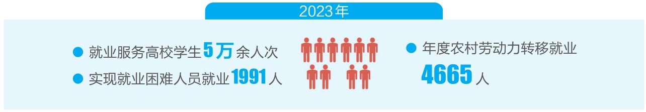 工作中,安宁市注重保障3个重点群体的就业工作。在促进高校毕业生稳定就业方面,2023年服务高校学生5万余人次,实现户籍高校毕业生服务率100%、就业去向落实率90.5%;开发就业见习岗位478个,新增就业见习245人,补贴282.6万元;受理一次性吸纳就业补贴140人,补贴29.4万元;受理小微企业吸纳高校毕业生社会保险补贴25人,补贴17.69万元。在兜牢困难群体就业底线方面,通过开发岗位、企业吸纳、就业援助等途径,实现就业困难人员就业1991人,安置城镇公益性岗位106人,发放岗位补贴和社保补贴235万元,兑付灵活就业人员社会保险补贴355人207.36万元。在提升农村劳动力就业水平方面,依托基层就业阵地,组织招聘活动27场、农民培训12831人次,年度农村劳动力转移就业4665人,实现转移收入9109.75万元。?