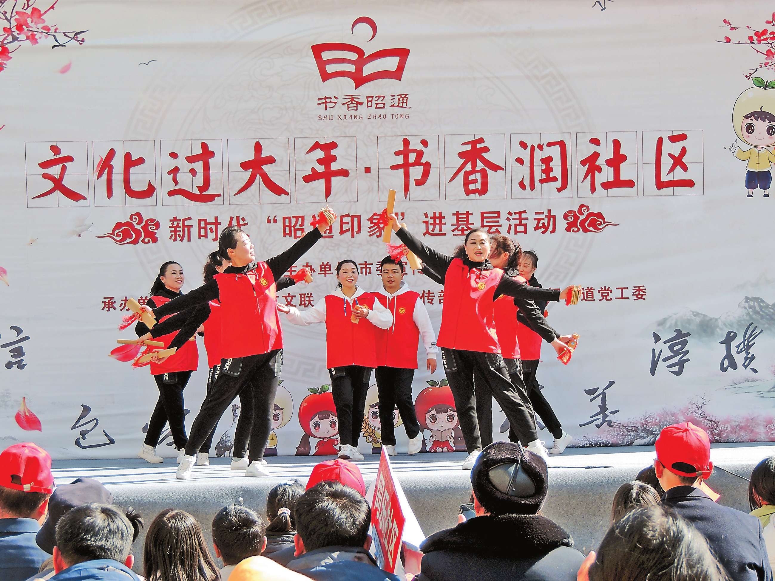 2月1日,在歌曲《好运来》的旋律中,昭通市“文化过大年 书香润社区——新时代‘昭通印象’进基层示范活动”在昭阳区北闸街道拉开序幕。活动现场,快板《美丽昭通》、舞蹈《民族团结一家亲》等精彩节目轮番上演,礼让斑马线、文明礼仪知识等有奖知识竞答吸引了大批观众参与互动。主办方还通过流动图书车,将书刊、杂志等精神食粮送到群众身边,组织文艺工作者为社区群众写春联、送“福”字。
