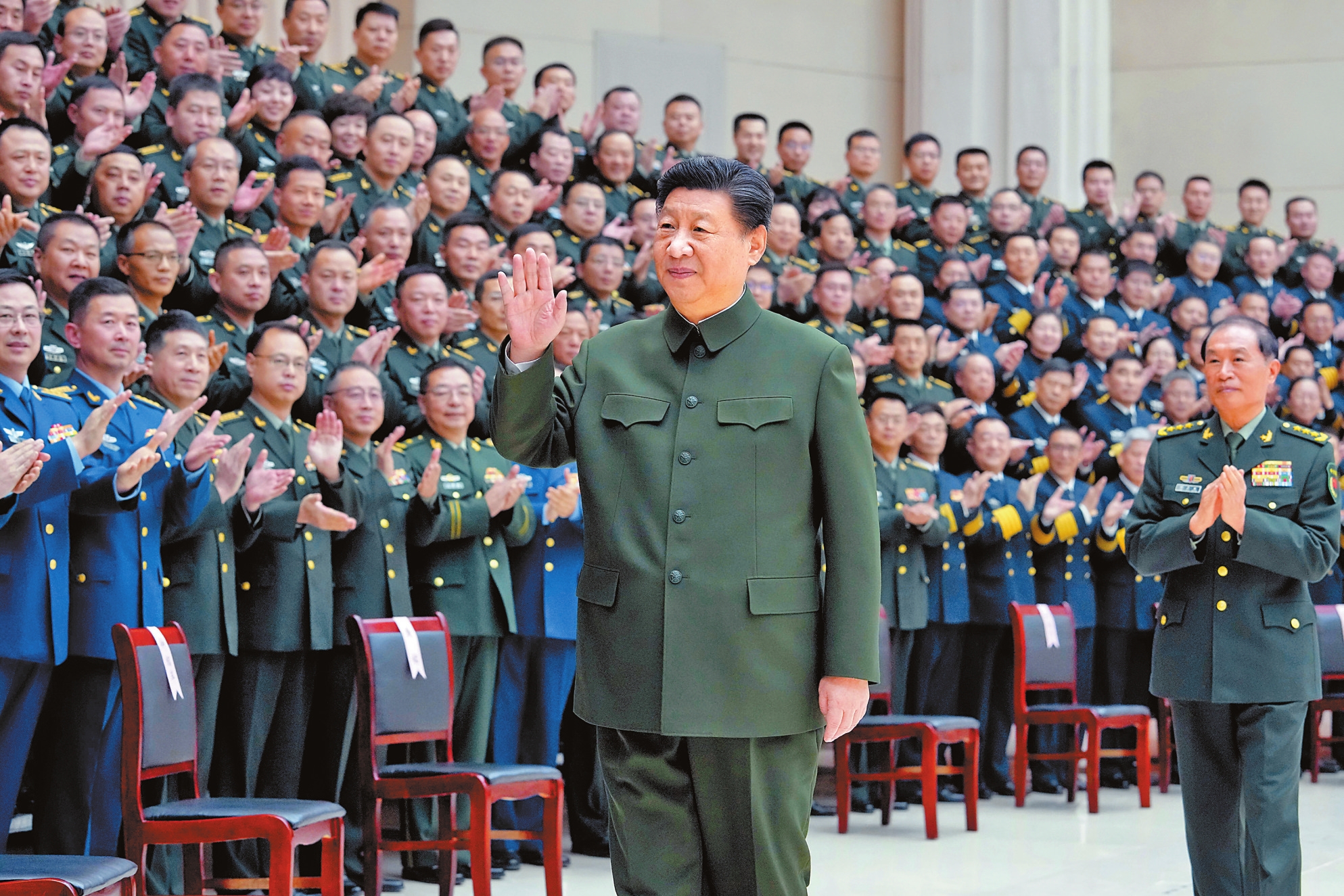 习近平强调,新的一年,要深入贯彻新时代强军思想,深入贯彻新时代军事战略方针,扭住打好实现建军一百年奋斗目标攻坚战,强化使命担当,狠抓工作落实,努力开创部队建设新局面,坚决完成党和人民赋予的各项任务。